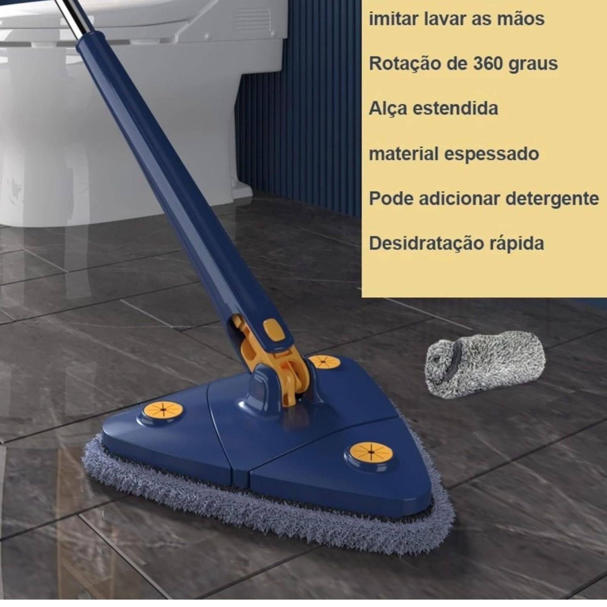 Esfregão Mop Triangular Triangulo Rodo Mágico 360° Giratorio com Refil de Microfibra p/ Limpeza Piso