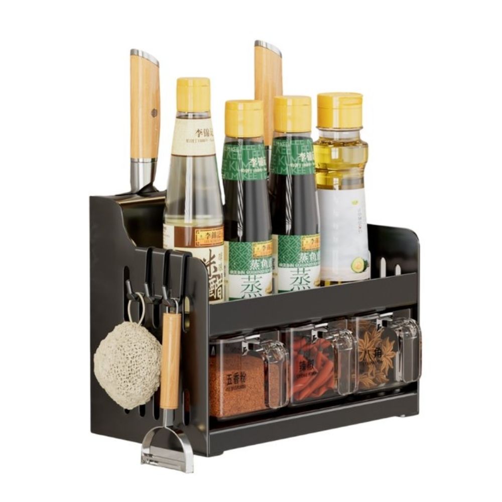 Porta Tempero Condimentos Kit com 3 Potes Mantimentos de Parede Organizador Utensílios Preto