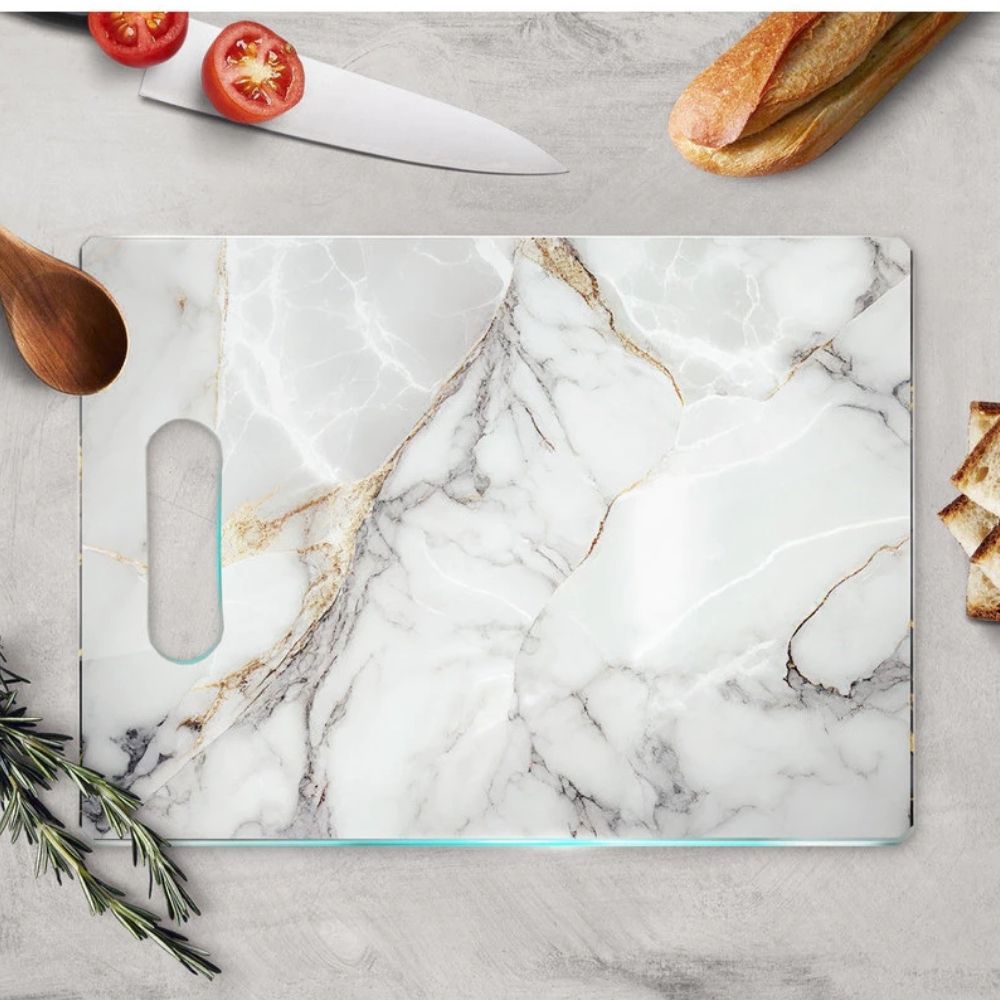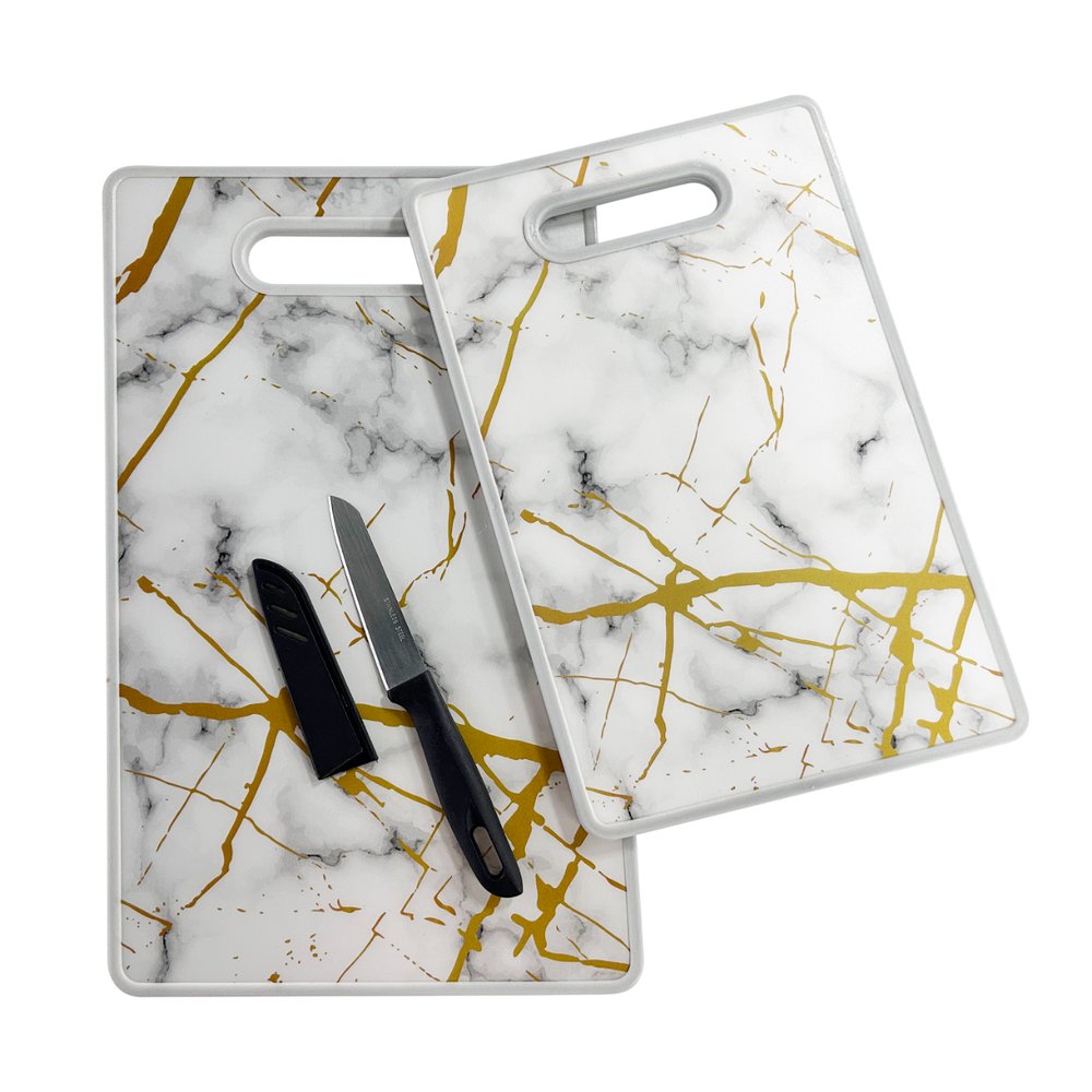 Kit 2 Tábua de Carne com Faca Efeito Mármore para Corte Legumes Frutas