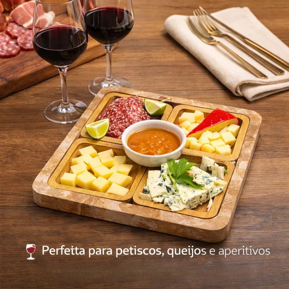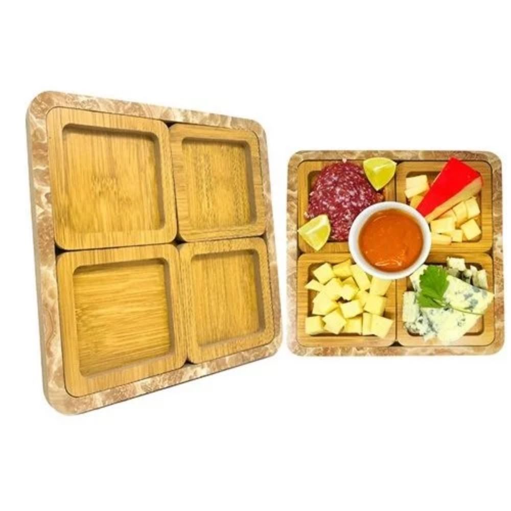 Petisqueira Quadrada Desmontável Em Bambu 4 Peças Tábua Frios