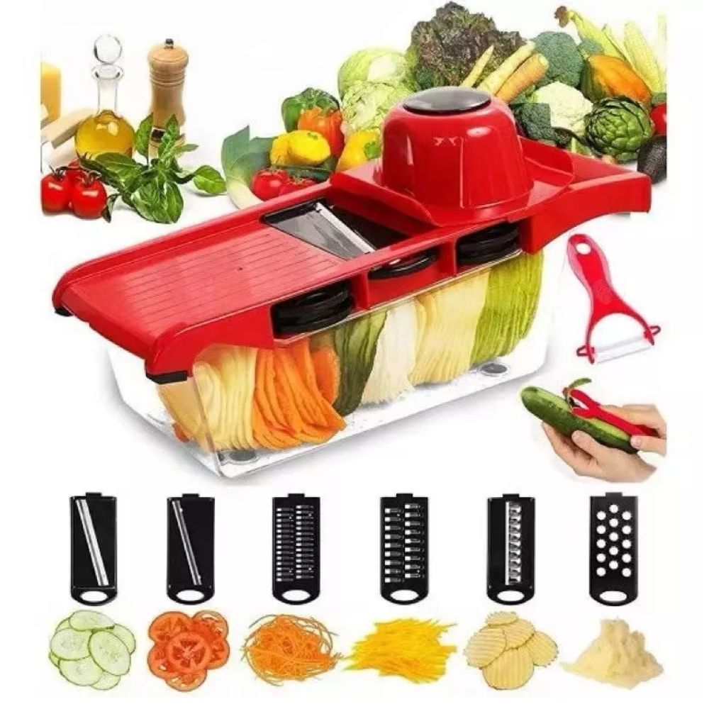 Cortador de Legumes 6 em 1 Fatiador e Ralador Multifuncional com Protetor de Mãos para Cozinha