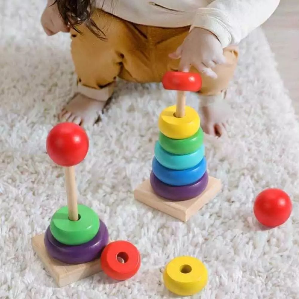 Pirâmide Brinquedo Educativo Madeira Argola Empilhável Torre Colorido Didático Infantil