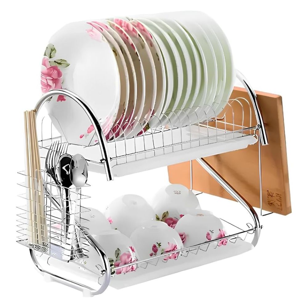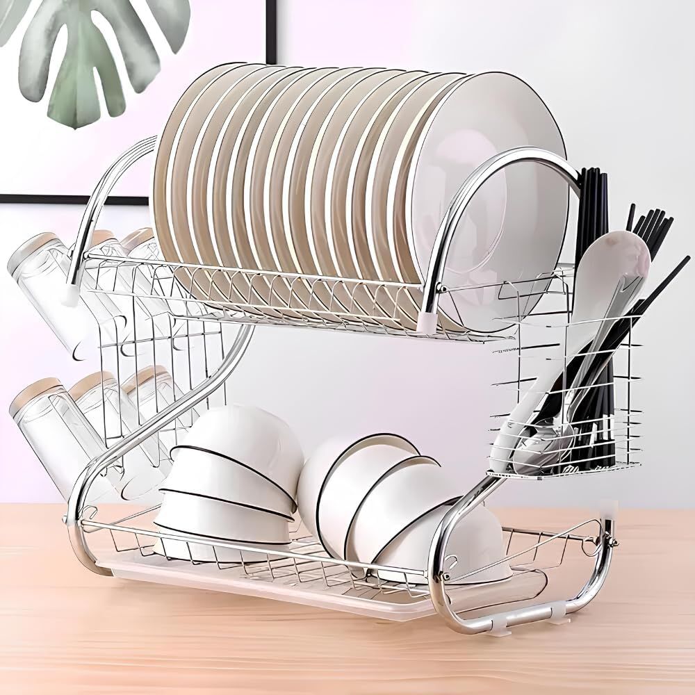 Escorredor De Louça Inox Suporte Organizador Pia Cozinha Porta Pratos Copos Talheres 2 Andares Com Bandeja