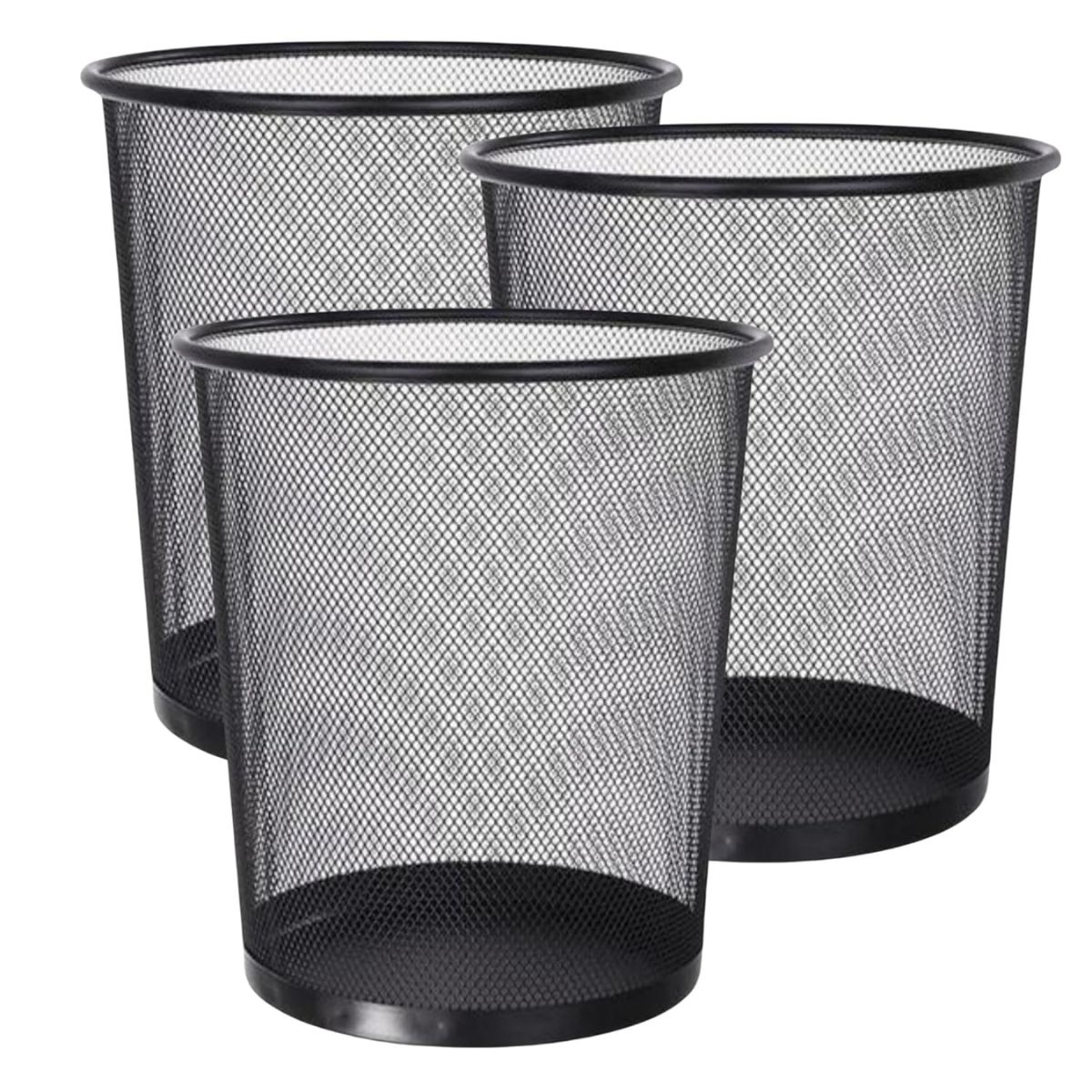 Kit 3 Lixeira Telada 10 Litros de Metal Aramado Redonda para Cozinha Banheiro Escritório Quarto