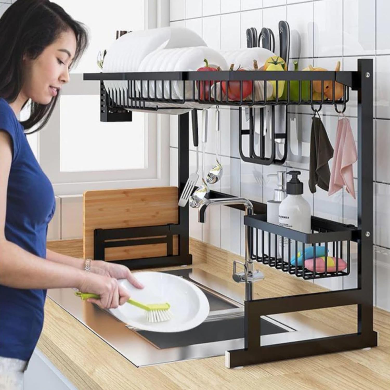 Escorredor de Louças Suspenso Inox Preto Fosco para Pia Organizador Compacto Durável Moderno