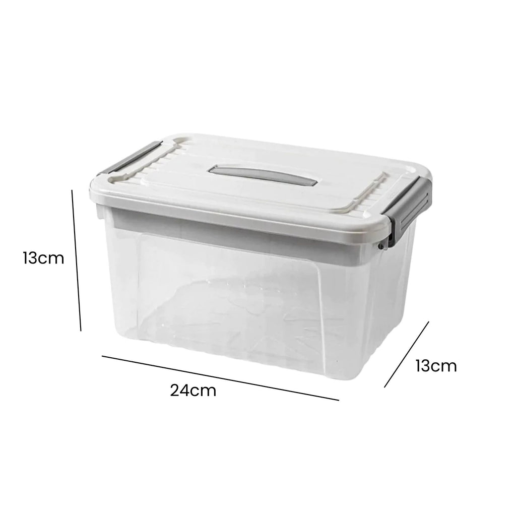 Fabricada em plástico resistente e de alta qualidade, a caixa organizadora possui tampa branca com alça embutida, que facilita o transporte e o manuseio, além de travas laterais firmes que garantem o fechamento seguro e evitam que a tampa se solte. Seu design transparente permite visualizar o conteúdo interno rapidamente, otimizando o tempo e tornando sua rotina mais prática e funcional.