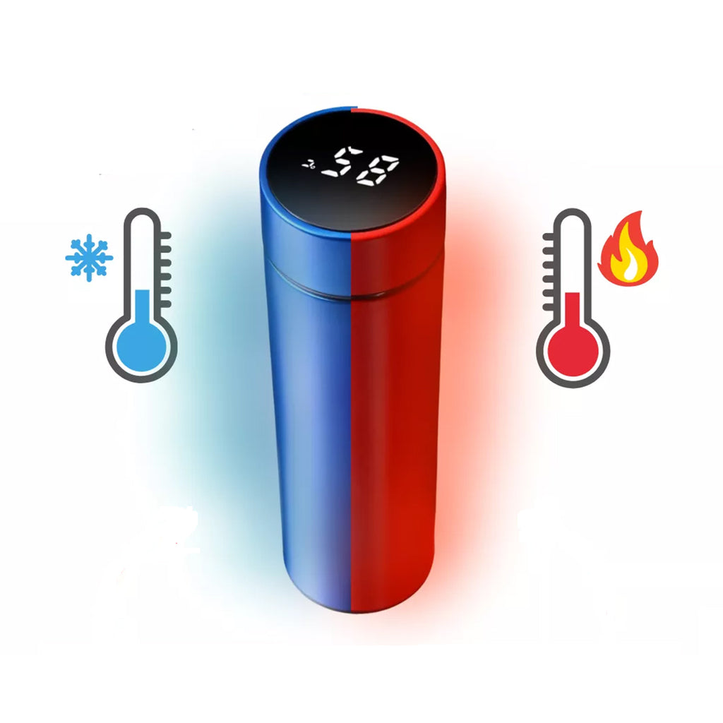 Garrafa Térmica Inteligente com Indicador e Sensor de Temperatura LED Garrafa Térmica Inteligente com Indicador além de ser super elegante e inovadora mantém a temperatura do líquido, ainda possui um termômetro na tampa, com tela de Led digital touch, onde você pode sempre verificar a temperatura do líquido tocando na tampa. A garrafa mantém 12 Horas de água quente ou fria e possui um sistema que evita vazamentos. Perfeita para todos os momentos, viagens, esportes, trabalho e escola. Importante:- Termômetro está na tampa e precisa estar em contato com líquido para aferir com mais precisão. Caso a garrafa não esteja completamente cheia, aconselha-se virar a garrafa para uma medição mais exata. Características adicionais:- Visor digital smart que indica a temperatura- Mantém a temperatura da bebida quente por até 12 Horas- Termômetro Digital- Não muda o sabor da bebida- Sensor de alta precisão- Para bebidas quentes e frias- Contém 500ml- Conserva: 12H (Gelada) / 12H (Quente)- Filtro de (Café e Chá)- Material livre de BPA (Ecológico) Cuidados:- Lavar com sabão neutro e água- Tampa resistente a água- Tampa com tela LED, quedas e batidas podem danificá-la- Não colocar no congelador, diretamente ou no, micro-ondas Dimensões aproximadas:- Tamanho: 6,5 cm x 23 cm Material:- (Exterior): Aço Inoxidável- (Interior): Isolação a vácuo Itens incluso:- 01 Garrafa Térmica Inteligente com Indicador e Sensor de Temperatura LED