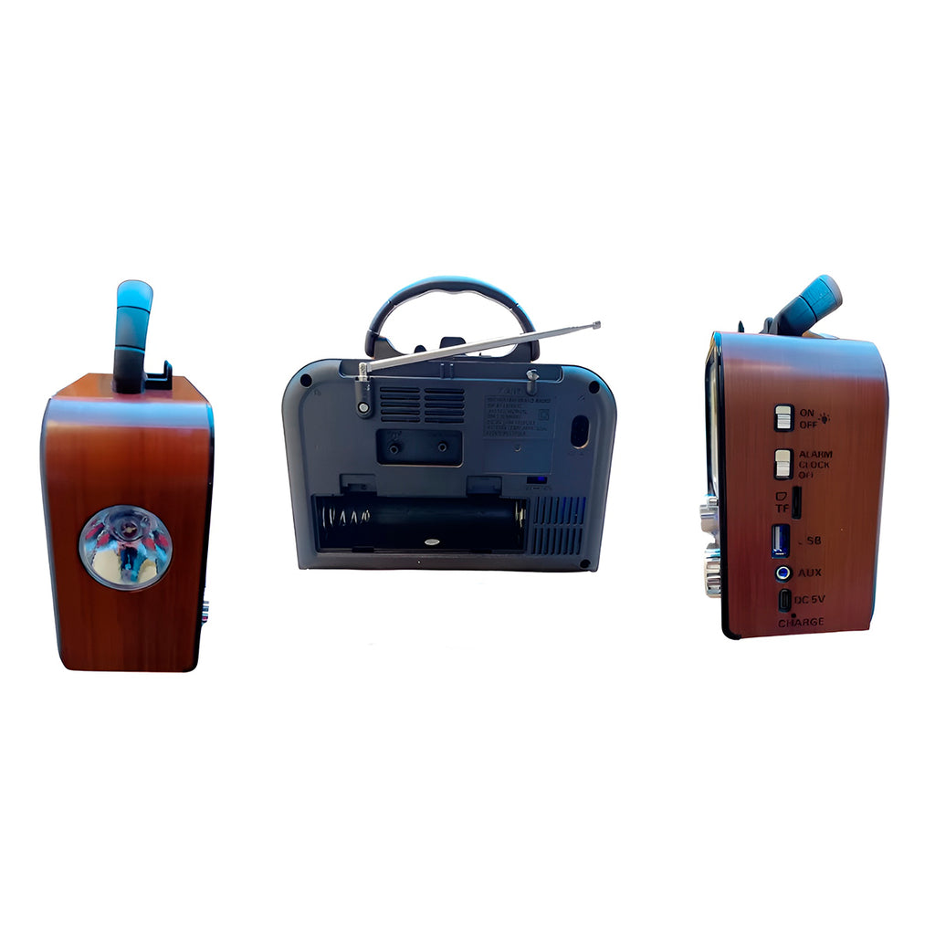 Reviva a nostalgia com a tecnologia do presente! Traga um toque de charme clássico e funcionalidades modernas para sua casa com o nosso Rádio Retrô Vintage. -Perfeito para amantes de música e design, ele combina a beleza atemporal do passado com a conveniência da conectividade atual, criando uma atmosfera única em qualquer ambiente. -Seu visual vintage, botões e mostradores autênticos adicionam um charme nostálgico que complementa desde ambientes clássicos até os mais modernos, tornando-se um verdadeiro destaque. -Compacto e leve, fácil de transportar. - Com alça de transporte. Especificações Técnicas: - Dimensões Aprox.: 13cm (ALTURA) x 21cm (COMPRIMENTO) x 8cm (LARGURA) - Cor: Marrom - Entrada: USB/Cartão SD e TF/Cabo p2/Cabo DC V5 - 3 Bandas: FM (88MHz-108MHz), AM (530KHz-1600KHz) e SW (5.9MHz-18.0MHz) - Recarregável - Bivolt - Antena embutida - Relógio Analógico - Fonte de Alimentação: 1 pilha A (NÃO INCLUSA)/ Cabo de energia - Com lanterna embutida Itens Inclusos: - 01x Rádio - 01x Cabo USB - 01x Manual