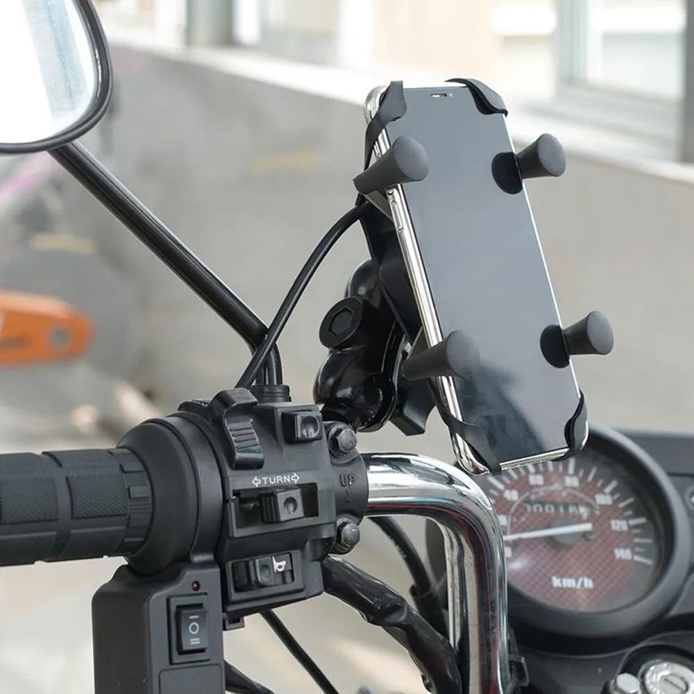 Suporte Multifuncional Garra para Celular Moto Universal com Carregador USB