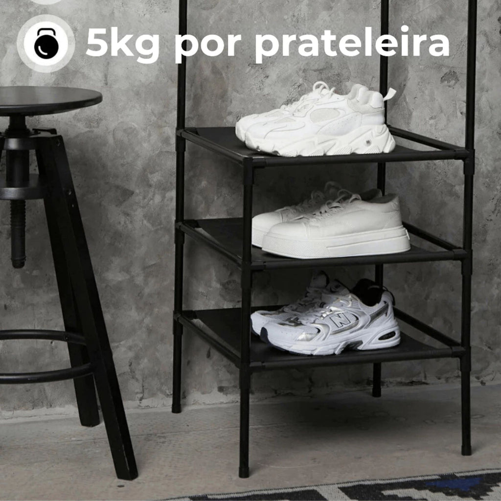 Guarda Roupa Armário Portátil Aberto Arara Desmontável Multifuncional Sapateira de Chão