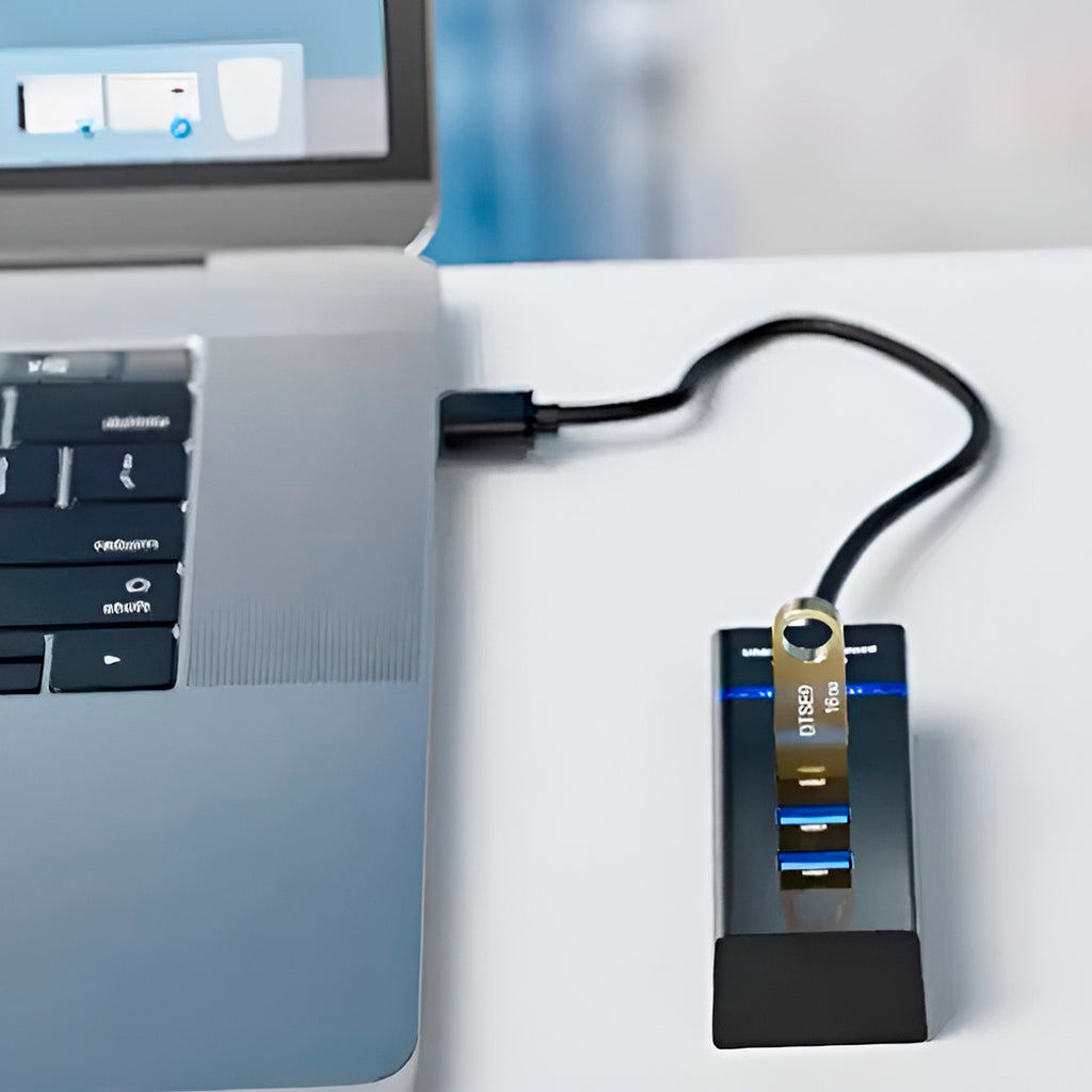 Precisando de mais portas USB no seu computador? Com o nosso Hub USB 4 Portas, você multiplica suas conexões de forma rápida e fácil! Ideal para quem precisa conectar diversos dispositivos ao mesmo tempo, como: - Organização: Mantenha sua mesa organizada com todos os seus dispositivos conectados em um único lugar. - Praticidade: Não precise mais ficar trocando cabos. - Eficiência: Aumente a produtividade com transferências de dados mais rápidas. - Versatilidade: Ideal para uso em casa, no escritório ou em viagens. Especificações Técnicas: - Modelo:Hub Usb 4 Portas - Material: Liga de Alumínio, Borracha, Componentes Elétricos. - Cor Preto - Entradas: 4x USB 3.0 5.0Gb/s (Compatível com USB 2.0 e 1.1) - Dimensões Aprox.: 10,5cm (COMPRIMENTO) x 3,5cm (LARGURA) x 2,5cm (ALTURA) - Alimentação: DC 5V USB -Taxa de transferência de dados: 60MB/s - Comprimento do cabo: 30cm Itens Inclusos na Embalagem: - 01x Hub 4 Portas