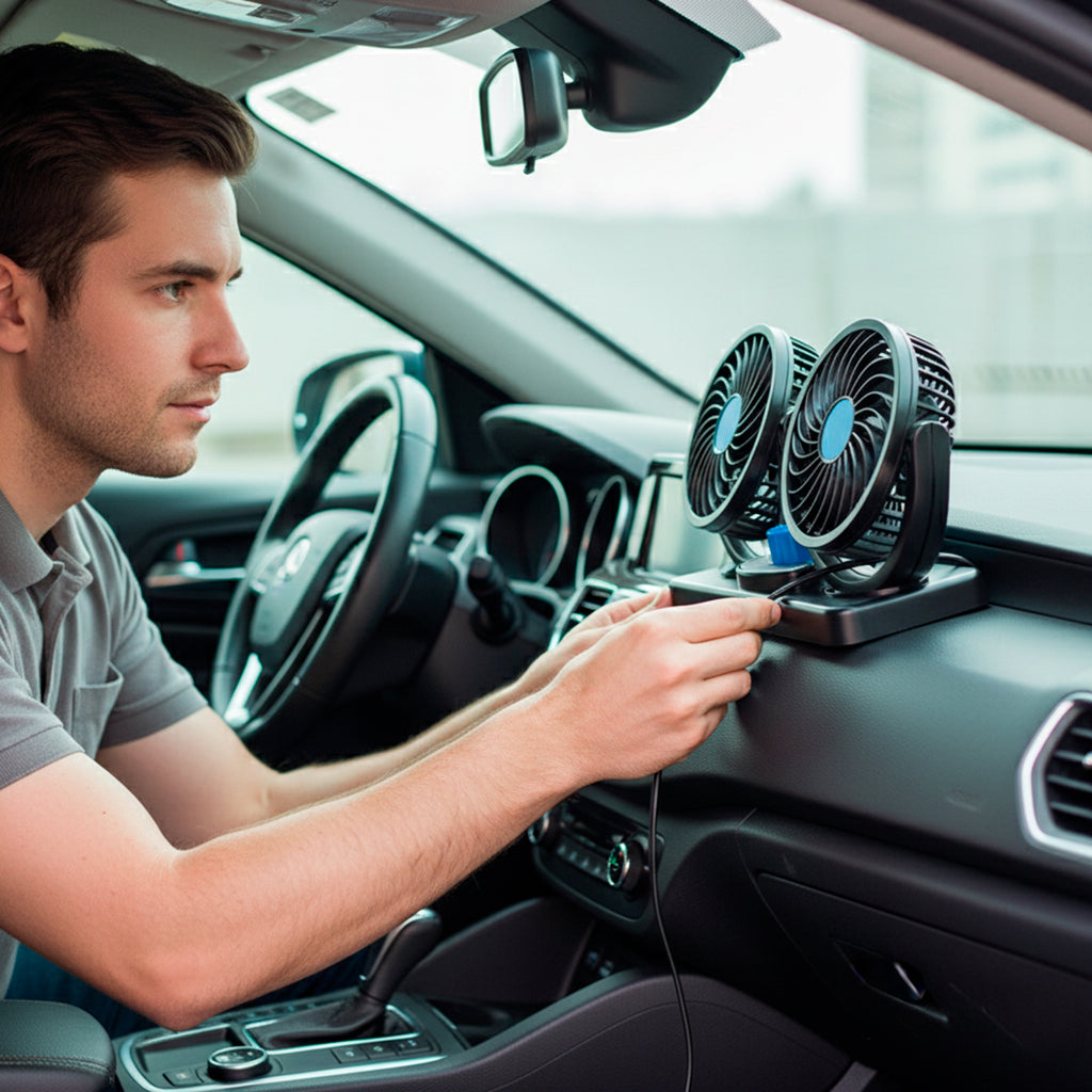 Diga adeus ao calor! Asolução prática e eficiente para refrescar o motorista e o passageiro, melhorando a circulação do ar em segundos. -O design inteligente permite que as duas cabeças do ventilador girem em 360 graus e sejam ajustadas individualmente. -Ele possui uma base adesiva forte que permite fixá-lo de forma segura no painel do carro, console ou qualquer superfície plana. -Basta conectar o plugue e o ventilador está pronto para uso! Especificações Técnicas: - Material: ABS/Componentes elétricos - Dimensões Aprox.: 26cm (COMPRIMENTO) x 10cm (DIÂMETRO) x 15cm (ALTURA) - Conexão: Tomada veicular - 5 pás - Voltagem: 12V - Ruido: 50db - Potência: 6,5W Itens Inclusos: - 01x Ventilador duplo