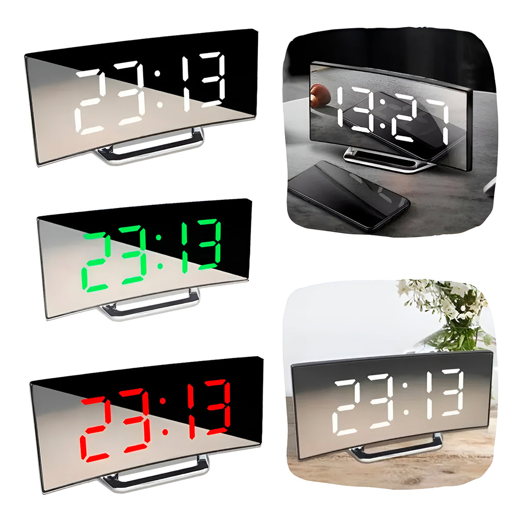Relógio Digital de Mesa Curvado Espelhado Despertador