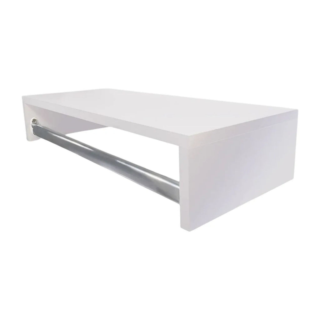 Fabricado em MDF resistente, este cabideiro oferece durabilidade e acabamento elegante, combinando facilmente com qualquer decoração. Sua prateleira superior permite guardar objetos adicionais, enquanto o tubo cromado garante segurança e resistência para pendurar suas roupas favoritas.