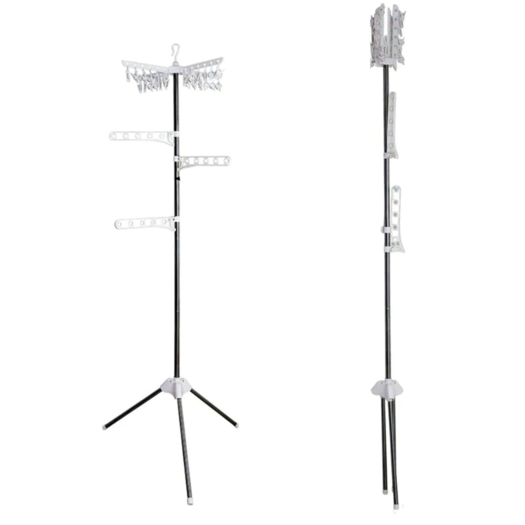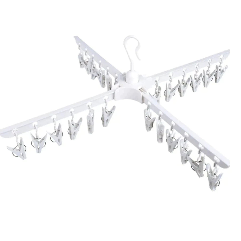 Transforme sua rotina com o Cabideiro Articulado Giratório com Prendedores, a escolha ideal para quem busca organização, funcionalidade e praticidade em casa, na lavanderia ou até durante viagens.