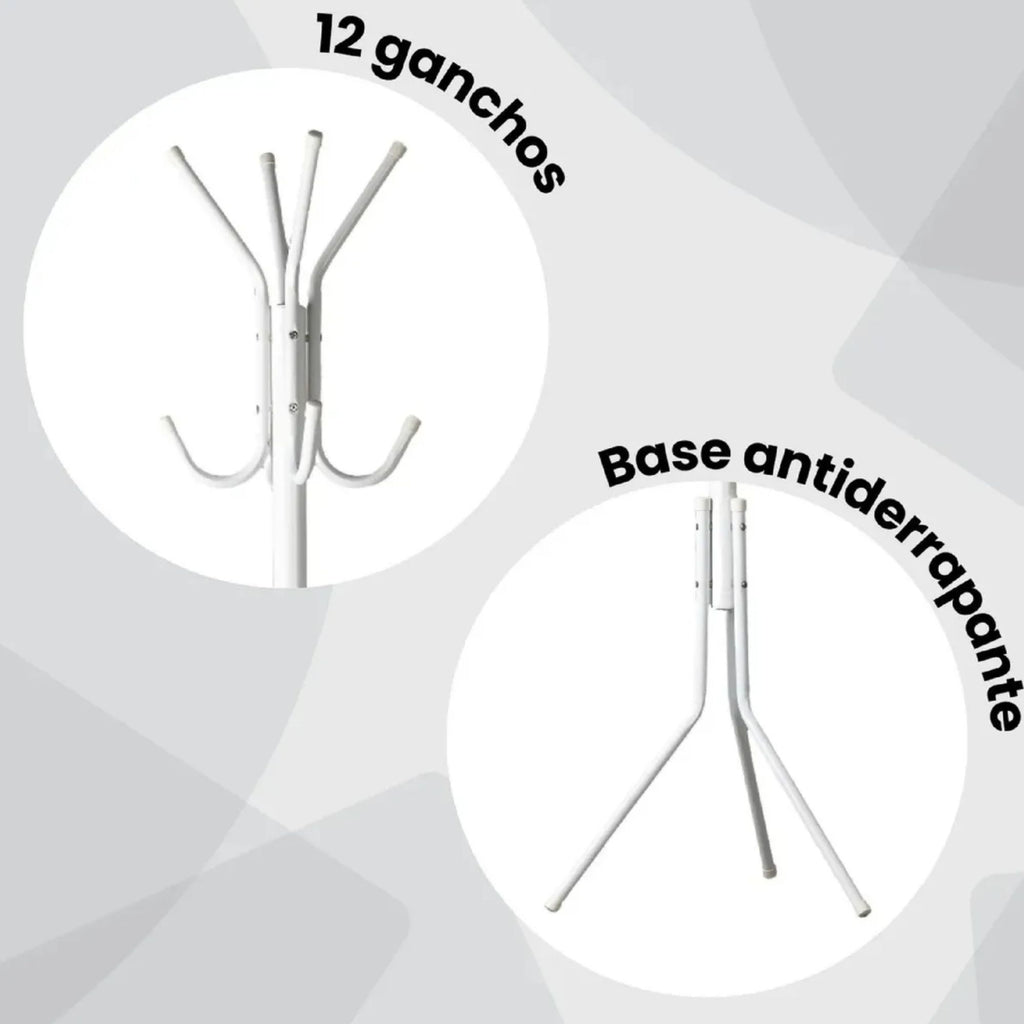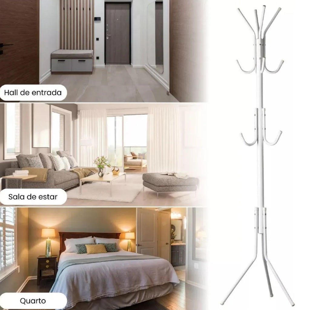 Cabideiro Mancebo de Piso 12 Ganchos Branco em Metal - Organização e Estilo para Seu Lar