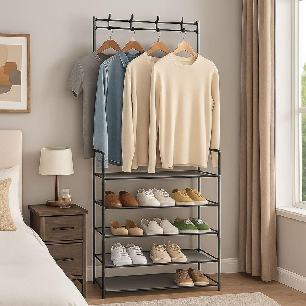 Estante Sapateira Organizador 5 Prateleiras com Ganchos – Organize Seus Calçados