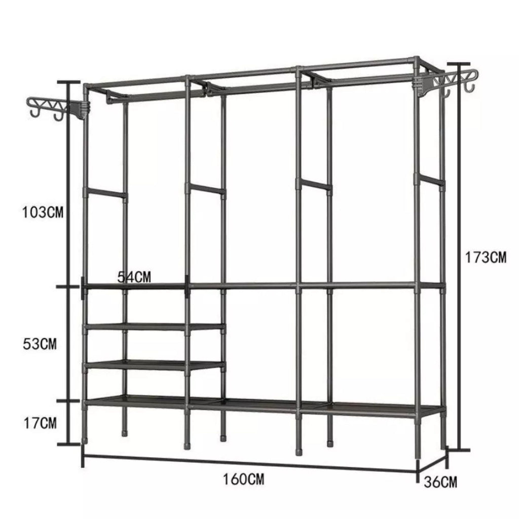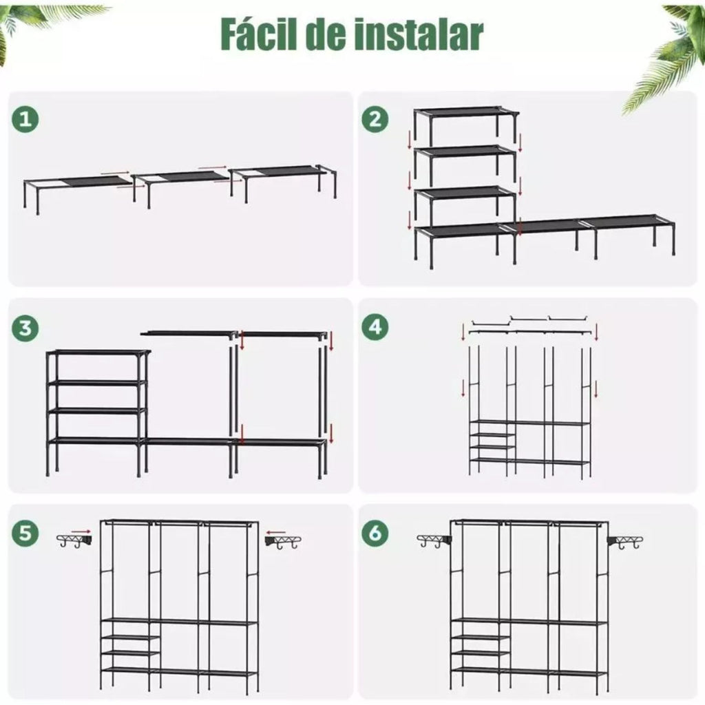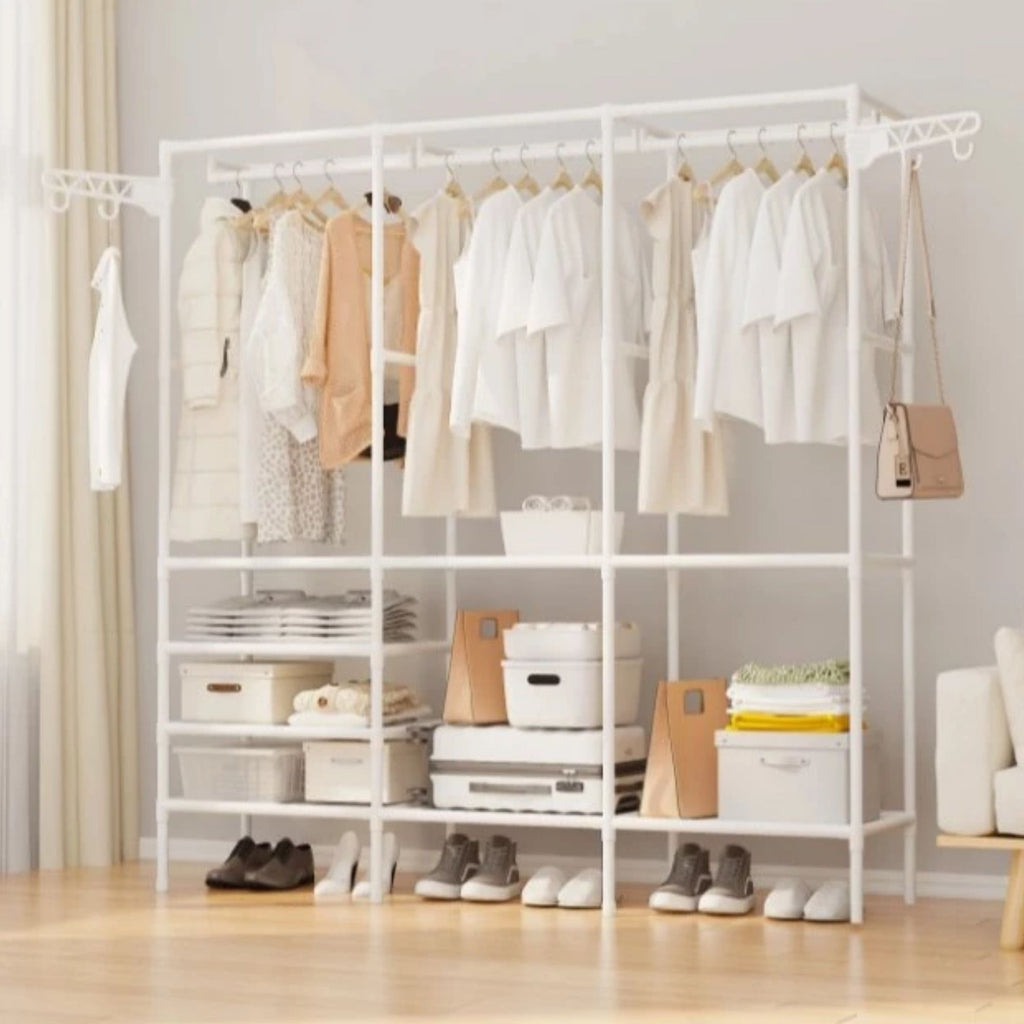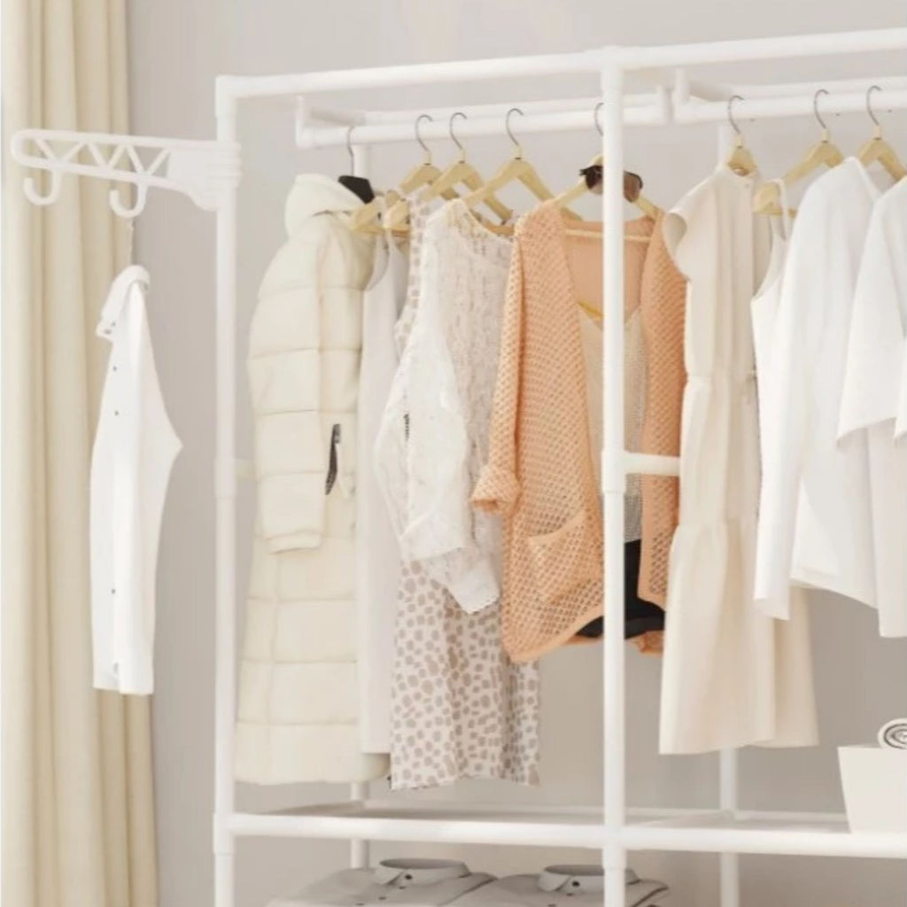 Com design suspenso e estrutura desmontável, esta arara funciona como um guarda-roupa compacto e funcional, perfeita para quartos, closets, lavanderias ou lojas de roupas.