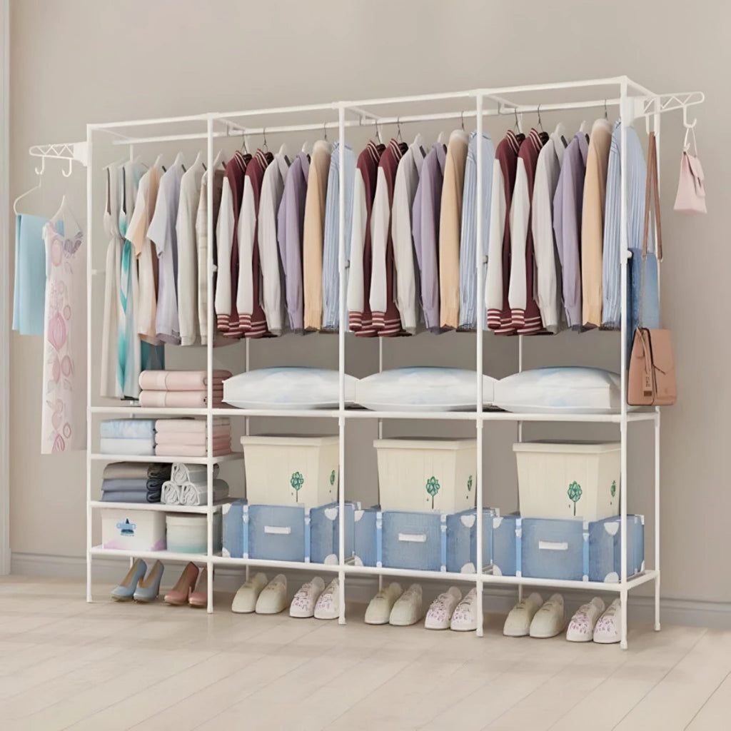 Com design suspenso e estrutura desmontável, esta arara funciona como um guarda-roupa compacto e funcional, perfeita para quartos, closets, lavanderias ou lojas de roupas.