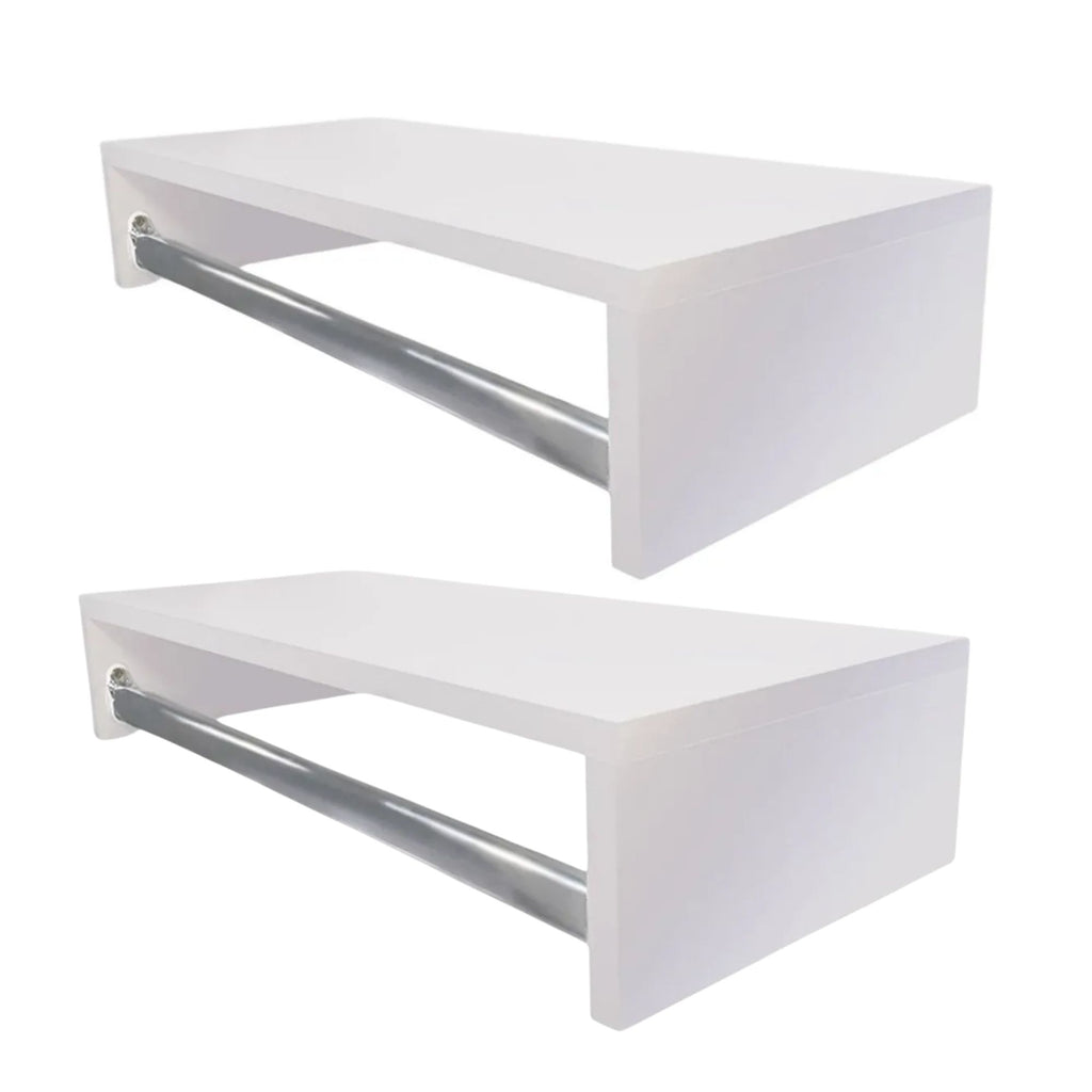 Fabricado em MDF resistente, este cabideiro oferece durabilidade e acabamento elegante, combinando facilmente com qualquer decoração. Sua prateleira superior permite guardar objetos adicionais, enquanto o tubo cromado garante segurança e resistência para pendurar suas roupas favoritas.