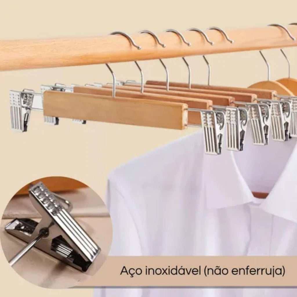Kit 30 Cabide de Madeira com Presilhas Cromadas Adulto para Calça Bermuda Blazer terno Vestido Saia