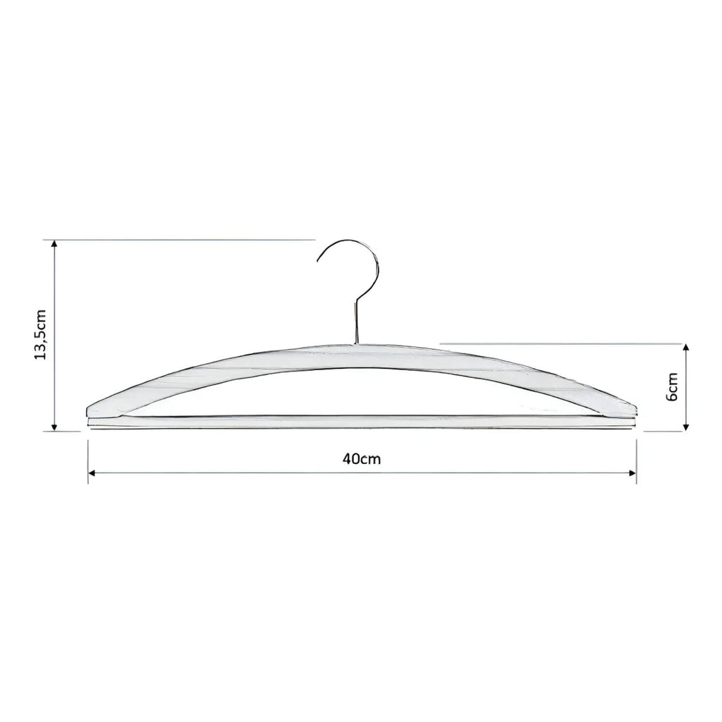 - Dimensões ideais: 40 cm de comprimento por 6 cm de altura — adequado para camisas, vestidos, jaquetas e camisetas.