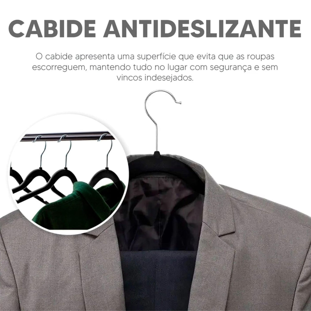 O toque de elegância e praticidade que seu armário precisa! Este cabide de veludo ultrafino é ideal para roupas delicadas e peças que escorregam facilmente, oferecendo uma organização eficiente e sofisticada.