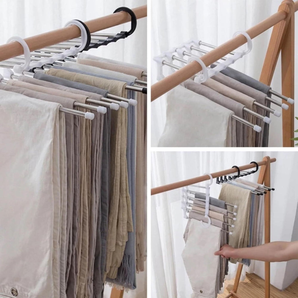 5 peças no espaço de 1, pode ser usado para pendurar calças, blusas, gravatas, cachecóis, toalhas entre outras peças pouco volumosas. Permite duas funcionalidades, tanto horizontal quanto vertical, facilitando a organização e liberando mais espaço para suas outras peças de roupa. Além disso, evita que as roupas ficam marcadas. O Cabide Multifuncional suporta até 5kg.