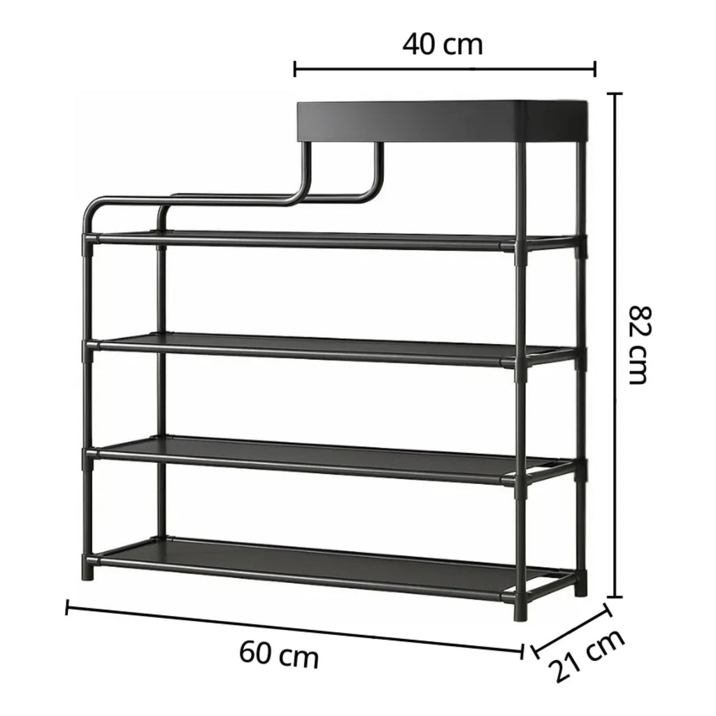 Com várias prateleiras resistentes, você pode armazenar de 10 a 15 pares de calçados, desde tênis, sandálias, chinelos até sapatos sociais. Além disso, o cestinho adicional oferece espaço extra para guardar objetos pequenos como chaves, carteiras, óculos e outros acessórios, garantindo que tudo fique organizado em um único lugar.