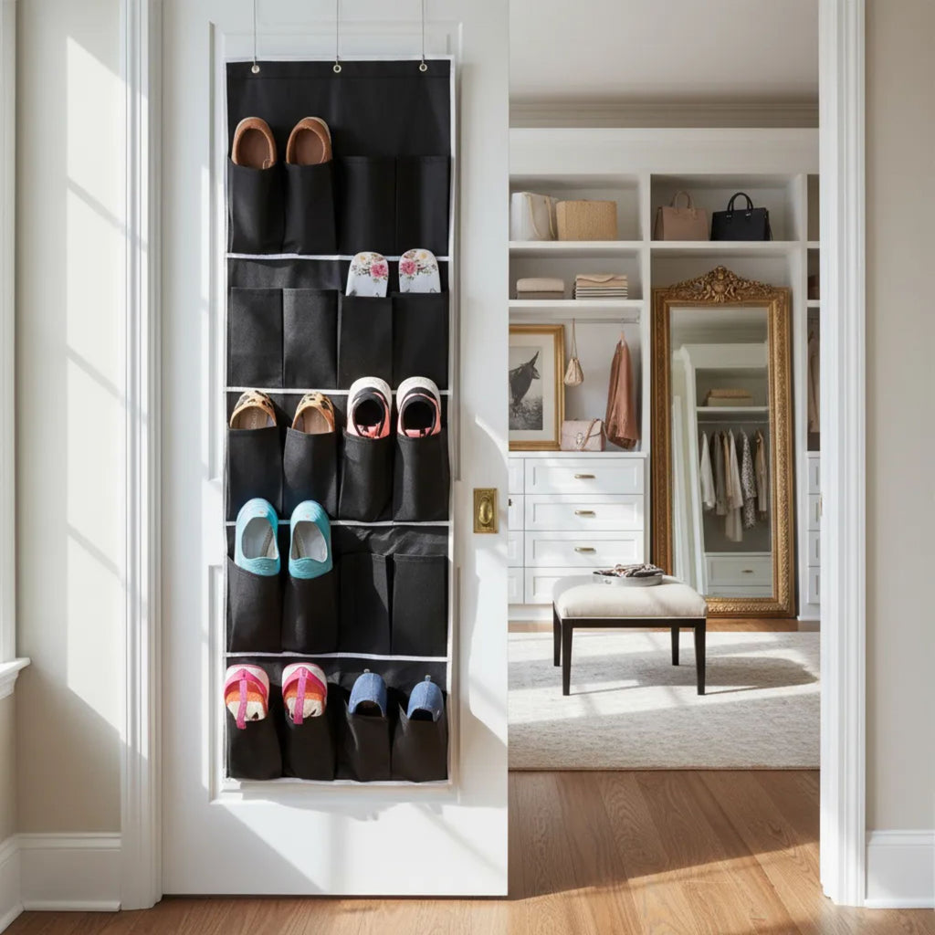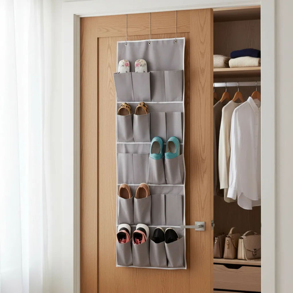Sapateira Suspensa de Porta em TNT - Organizador Dobrável para 10 Pares de Sapatos
