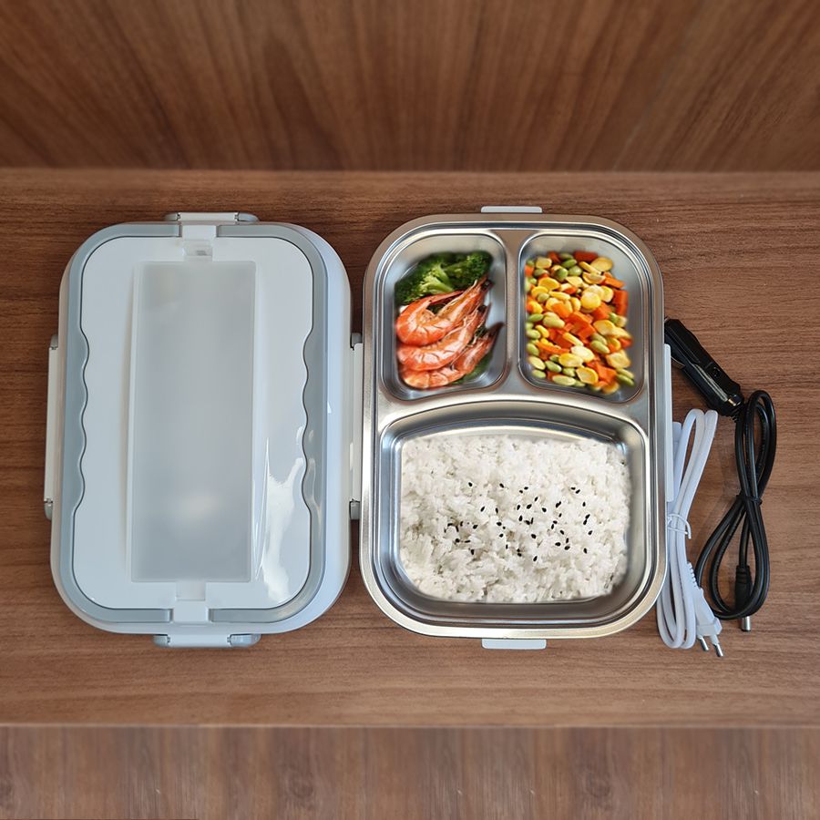 Marmita Termica Elétrica Pequena Portátil Com Compartimentos Bivolt 12V a 24V 110V 220V Que Esquenta Na Tomada Veicular