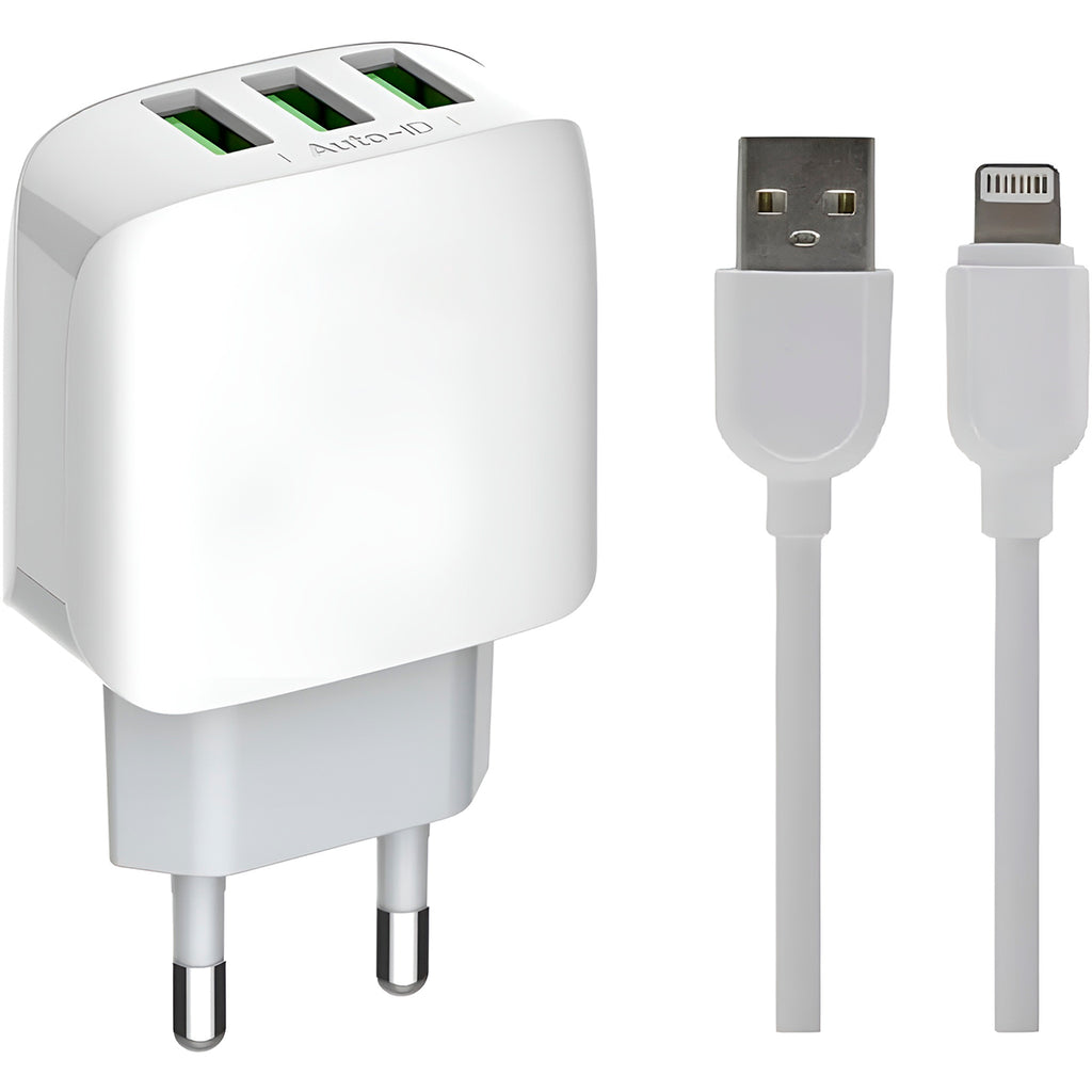 Carregamento Ultra Rápido e Eficiente! Apresentamos a solução definitiva para manter seus aparelhos IOS sempre com carga total, de forma rápida, segura e simultânea. - Este carregador oferece uma velocidade de carregamento superior aos adaptadores comuns. - Aproveite a conveniência de três portas USB no mesmo adaptador. - Possui proteções inteligentes contra sobrecarga, superaquecimento, curto-circuito e sobretensão. -Leve a eficiência do carregamento turbo para qualquer lugar, seja em casa, no trabalho ou em suas viagens! -Perfeito para o ritmo dinâmico do seu dia a dia! Especificações Técnicas: - Material: Plástico/Componentes Elétricos - Dimensões Aprox.: 3cm x 8cm x 14cm - Comprimento do Cabo: 1m - Cor: Branco - Voltagem de Saída: 5V 3.1A - Bivolt - 3 Portas USB - Amperes: 3.1A - Compatível com dispositivos IOS Itens Inclusos: - 01x Carregador Três Saídas - 01x CAbo IOS - 01x Manual