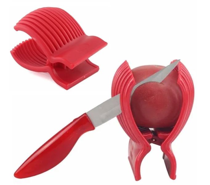 Suporte Apoiador Para Fatiar Alimentos Ideal para sua cozinha, o suporte para fatiar alimentos é fácil e prático de manusear. Com ele você tem mais segurança e pode obter fatias perfeitas. É super simples: coloque o alimento dentro do suporte e com a faca obtenha fatias perfeitas, sem sujar ou cortar as mãos. Pode ser utilizado para cortar cebolas, batatas, tomates, pepinos, pimentões, beterrabas, cenouras, abobrinhas, mandioquinhas, berinjelas, ovos cozidos e outros inúmeros alimentos. Especificações/Características do produto: Material: ABS Cor: Vermelho Dimensões: 12 x 8 cm Abertura: 10 cm Itens inclusos: 1 Suporte Para Fatiar Alimentos Atenção: 1 - O cliente tem até 7 dias corridos, após o recebimento, para devolução do produto (artigo 49). 2 - Lembrando que o produto deve retornar sem defeitos e na embalagem original. 3 - Imagem Meramente ilustrativa.