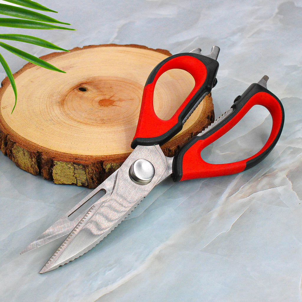 Tesoura Culinaria P/ Casa Cozinha Corta Desossa Limpa Peixe Carne Frango 6 em 1 Cor:Vermelho