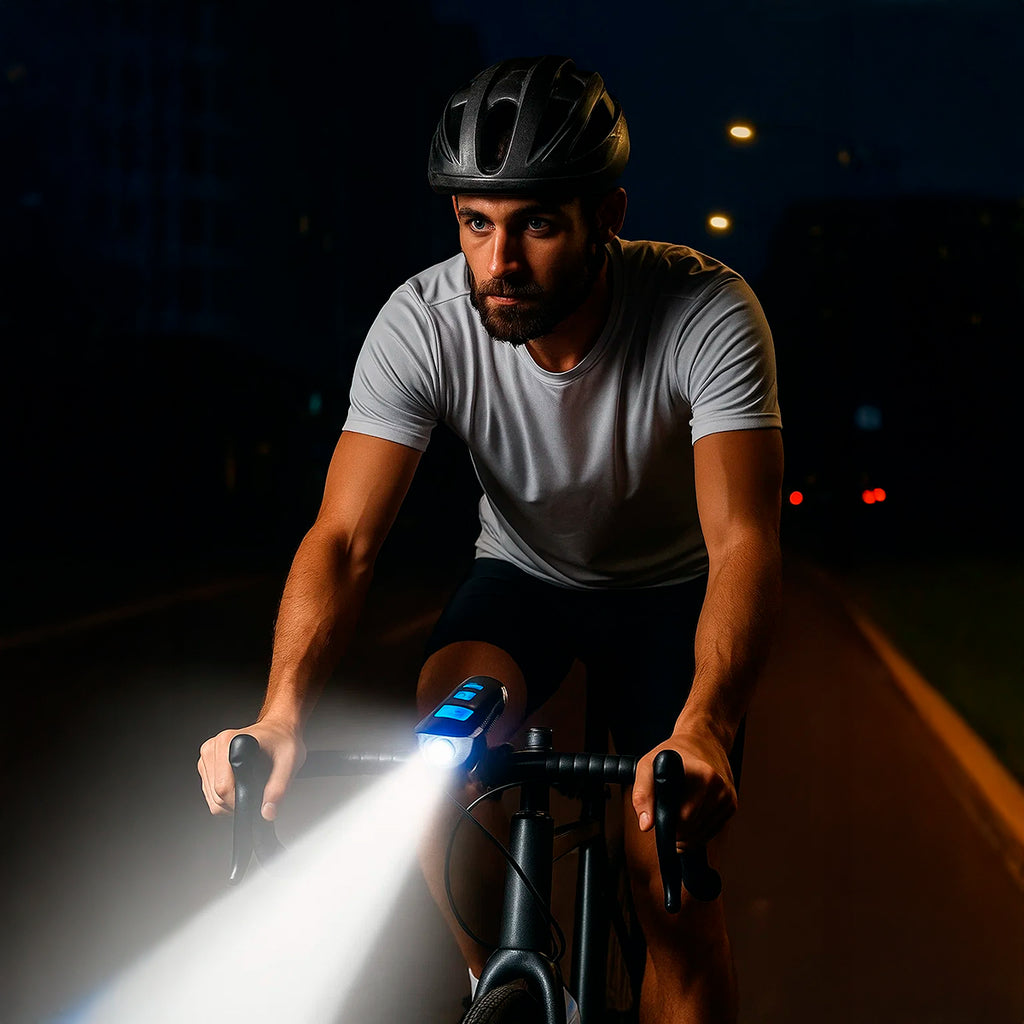 Um acessório indispensável que integra as ferramentas essenciais para todo ciclista: velocímetro preciso, lanterna potente e buzina de alerta.