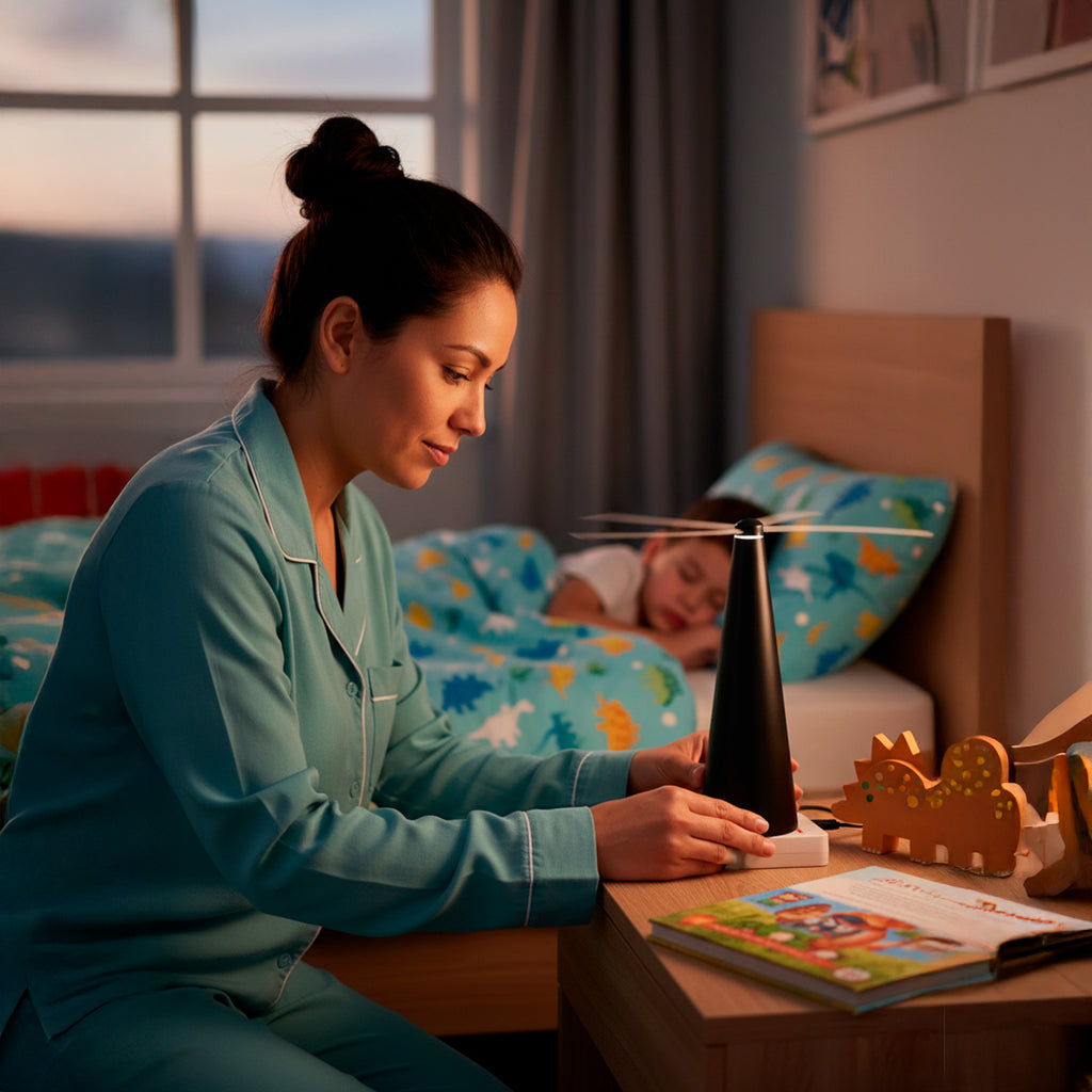 Ao invés de sprays, velas ou essências, nosso ventilador oferece uma solução limpa e contínua: gera um fluxo de ar que dificulta a aproximação dos insetos, enquanto mantém você refrescado. Não exige refis, recargas ou manutenção complexa.