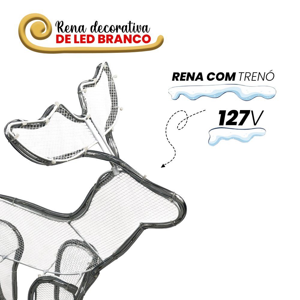 01 ARMAÇÃO COM RENA E TRENÓ DE LED 127V À PROVA D’ÁGUA