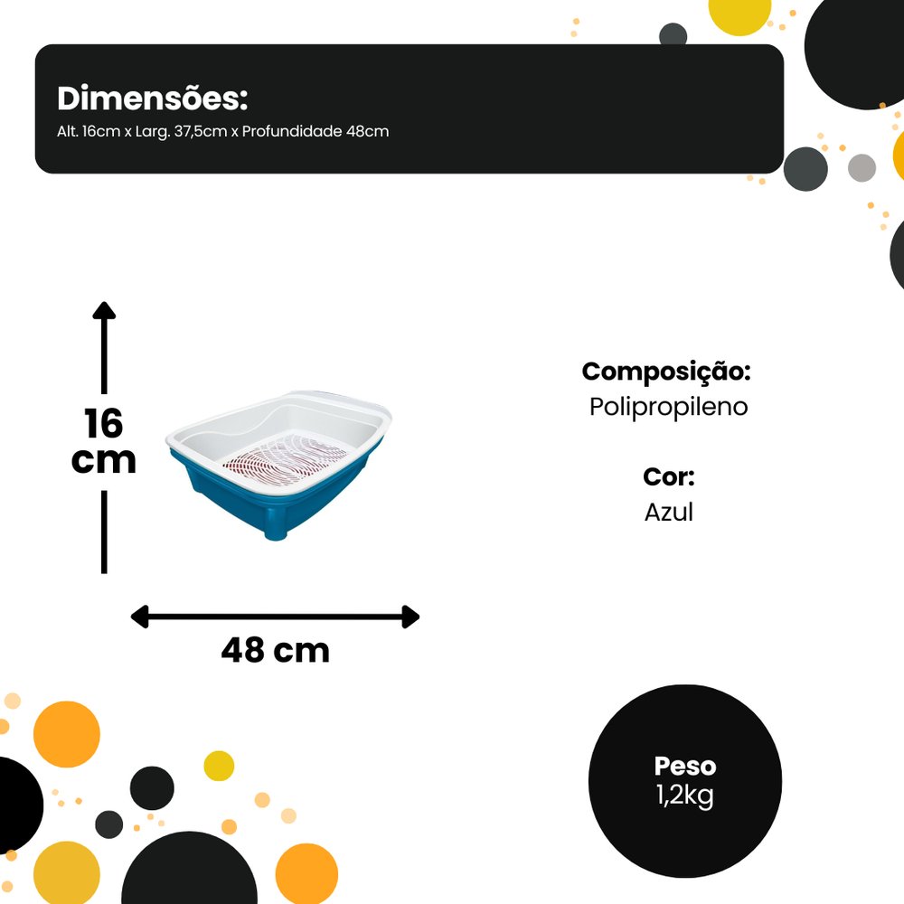 Cada conjunto possui 2 bandejas para limpeza fácil,  perfeita para quem não tem tempo e não quer se sujar.  Utilize a bandeja usada para peneirar sobre a bandeja extra e limpa.  Feita em Polipropileno, muito fácil de higienizar, pode ser lavada com uma esponja e sabão neutro. Dura 2x mais.