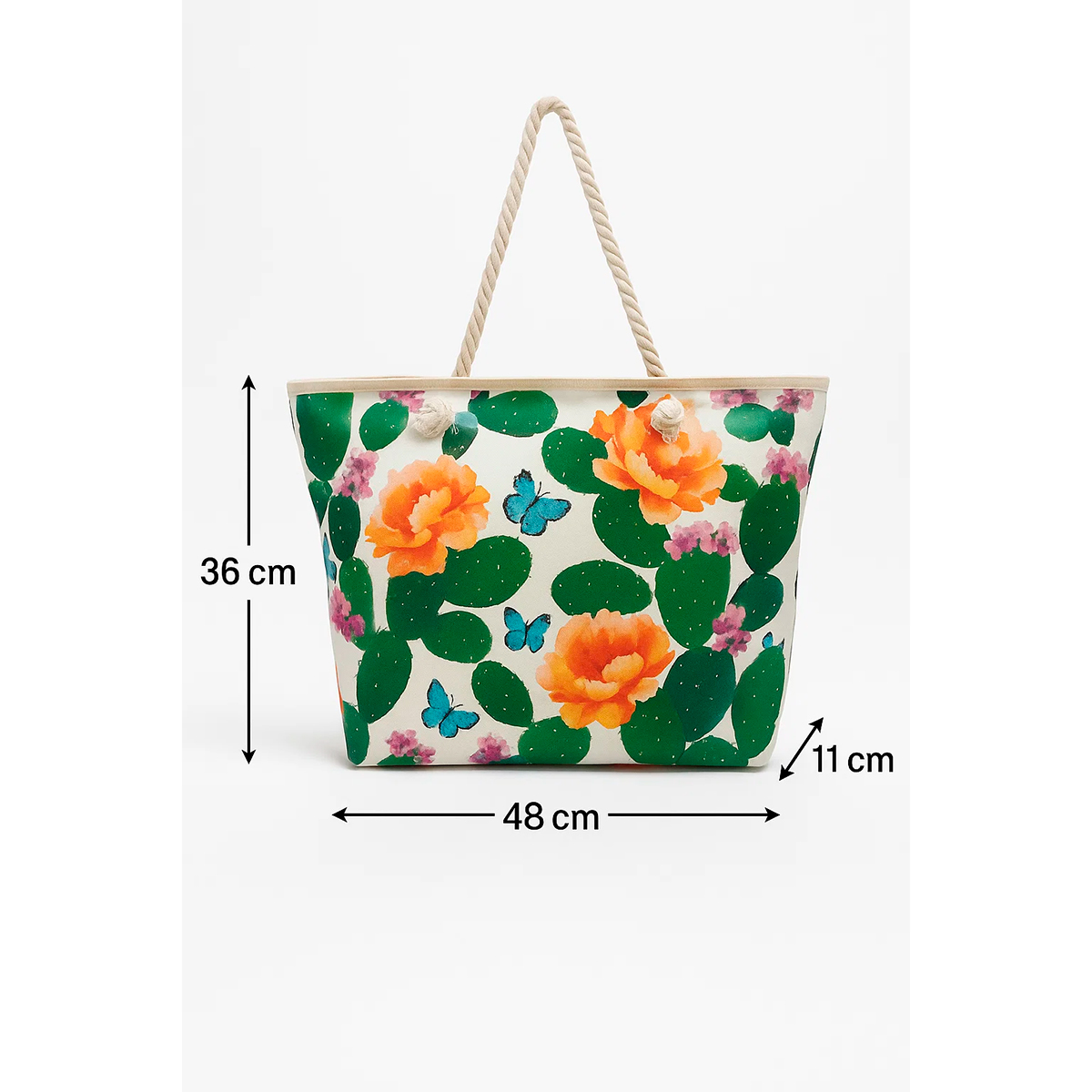 Prepare-se para arrasar nos seus passeios e dias de praia com a nossa exclusiva Bolsa de Passeio Praia Estampada Cactos e Flores com Alça! Uma fusão perfeita entre estilo, funcionalidade e o charme tropical que você merece. -Com uma estampa vibrante e alegre de cactos e flores, esta bolsa é um verdadeiro convite à natureza e ao verão. -Espaçosa e inteligente, ela oferece o compartimento ideal para tudo o que você precisa levar. – Esta bolsa garante durabilidade para acompanhar suas aventuras por muitas estações. -As alças proporcionam o máximo conforto, mesmo quando a bolsa está cheia, tornando o transporte leve e agradável. -Combine-a com seu biquíni favorito, shorts jeans ou um vestido leve e arrase! Especificações Técnicas: – Material: Poliéster/Tecido Lona – Tipo de Fecho: Zíper – Comprimento da alça: 60cm – Dimensões Aprox.: 36cm (ALTURA) x 48cm (COMPRIMENTO) x 11cm (PROFUNDIDADE) Itens Inclusos: – 01x Bolsa