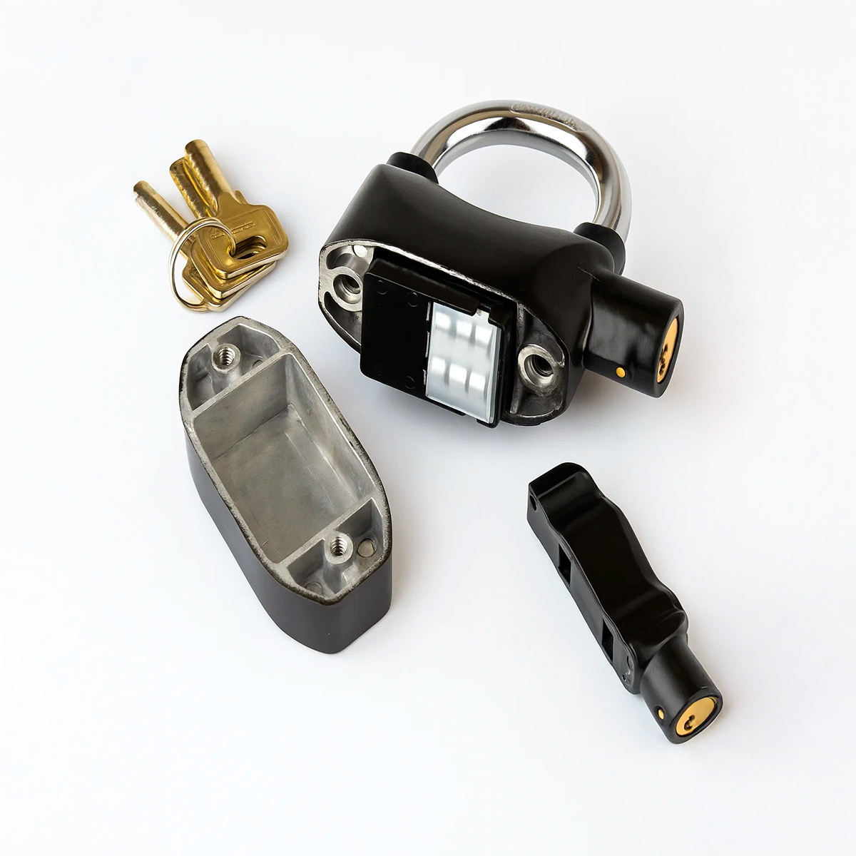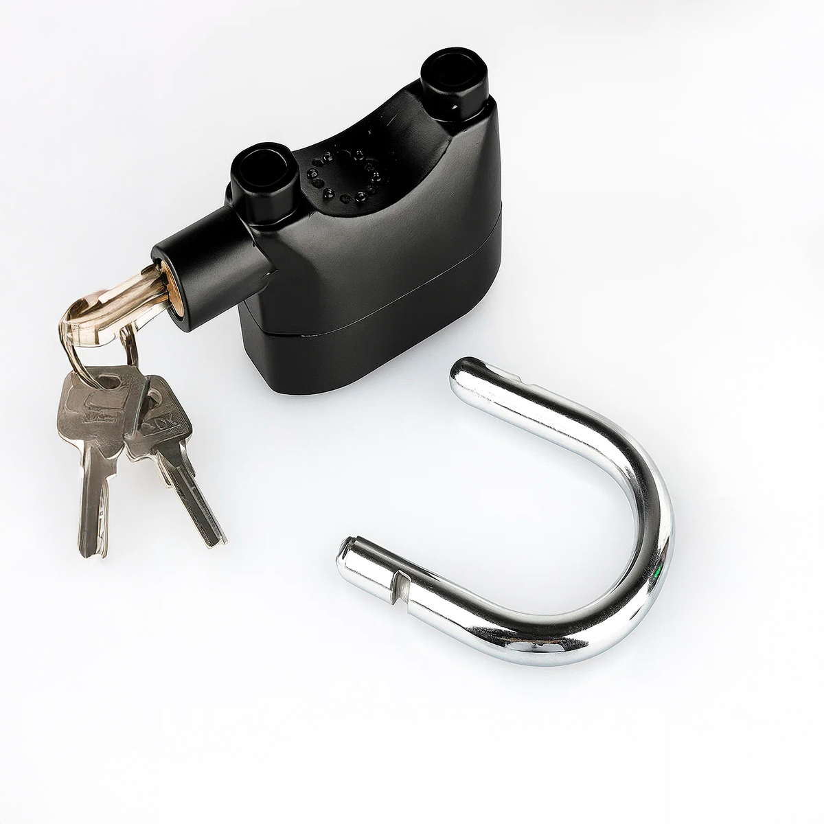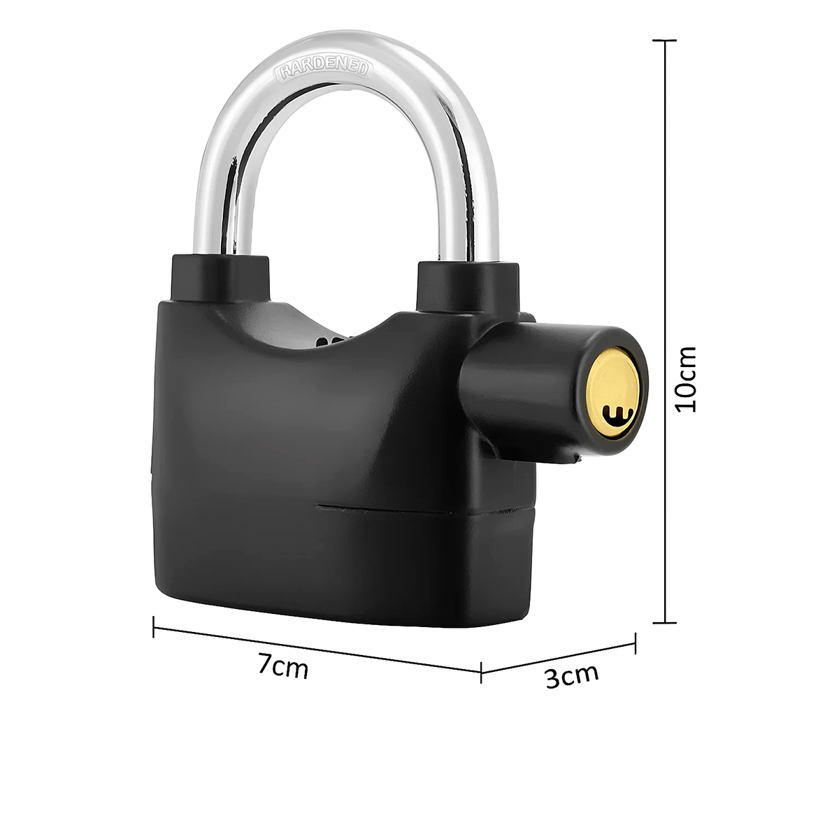 - Alarme potente de 112dB: dispara automaticamente ao detectar vibrações ou tentativas de forçar o cadeado.
