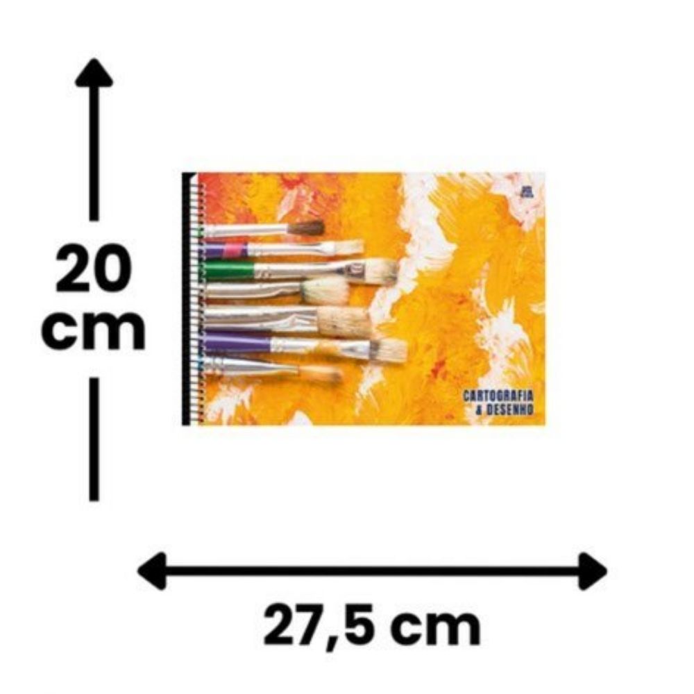Caderno de Cartografia e Desenho 60 Folhas Espiral Escolar Tema Arte e Pintura Sortido