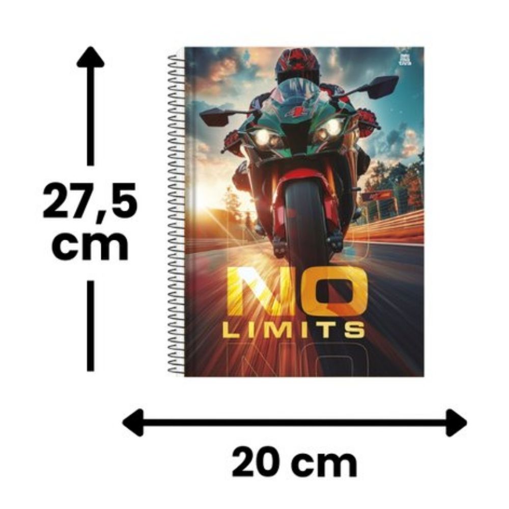O Caderno Universitário Moto Extreme 1 Matéria é a escolha ideal para quem busca qualidade, durabilidade e estilo em um único produto. Com capa temática “No Limits”, inspirada em velocidade, adrenalina e superação de limites, ele transmite energia, atitude e motivação para os estudos, trabalho ou planejamento de projetos.