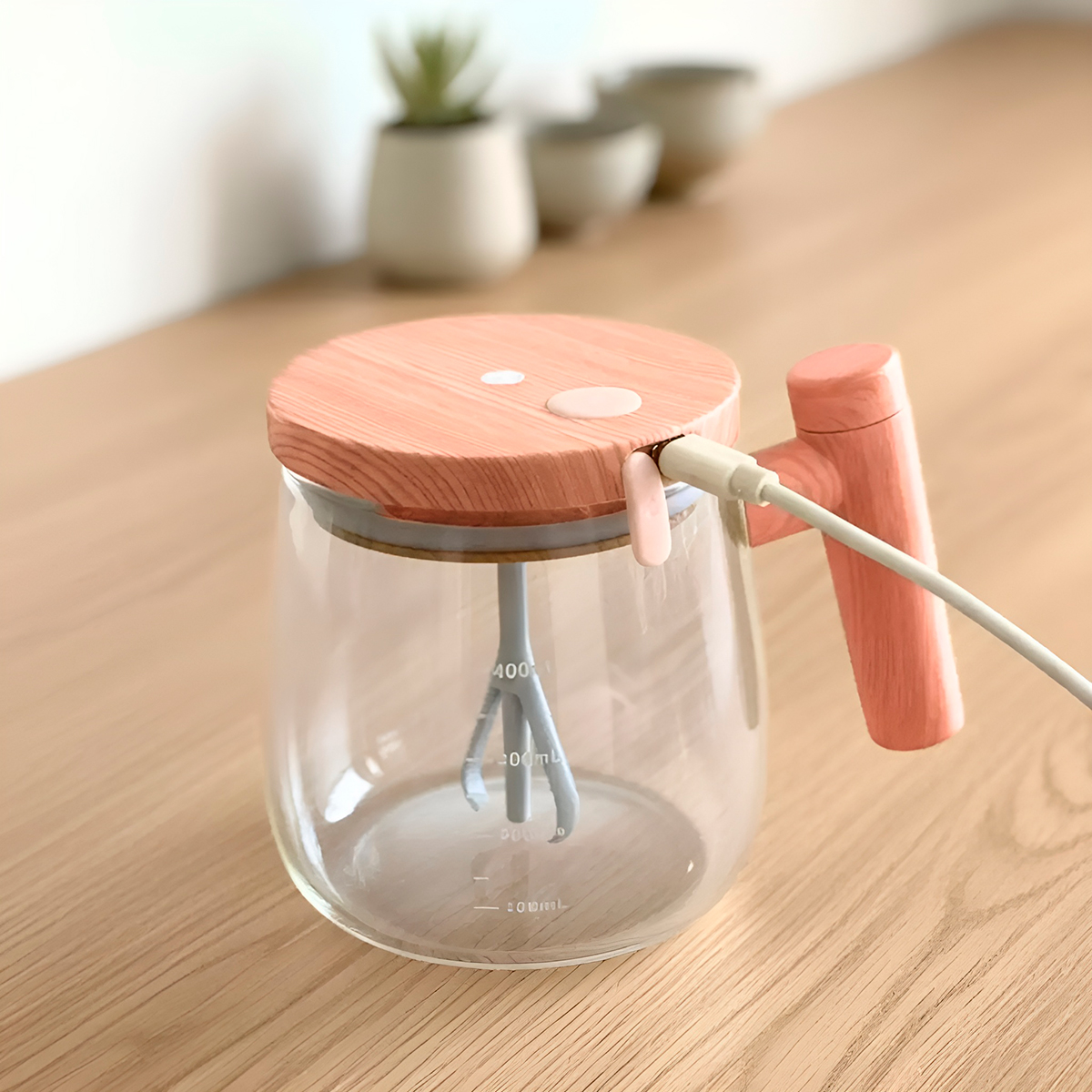 Equipada com uma mini garra magnética que gira em alta velocidade, ela cria um redemoinho poderoso que mistura tudo perfeitamente em segundos, sem esforço e sem sujeira.