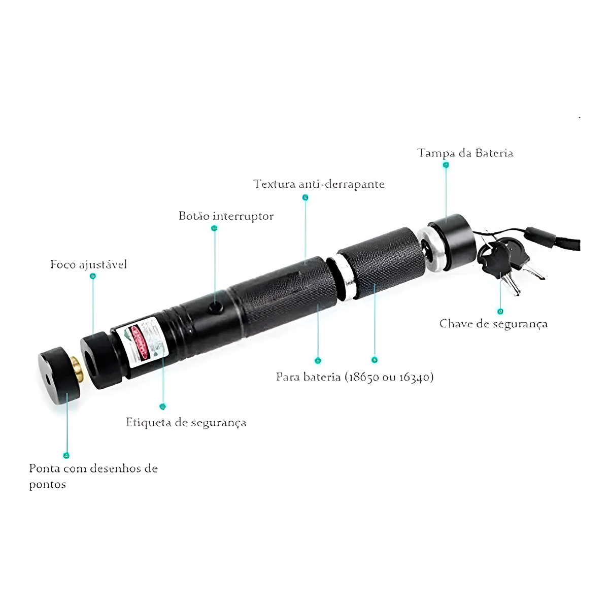 Ilumine e destaque com precisão e potência! O verde é mais visível ao olho humano, mesmo em ambientes claros, garantindo que seu ponto seja notado. – O laser emite um feixe de cor verde, que é produzido pela tecnologia de diodo laser de semicondutor. -Seu longo alcance permite que você aponte com clareza para quadros brancos, mapas, estrelas ou qualquer ponto de interesse a distância, mantendo o público engajado e focado. -Com design recarregável e longo alcance, ela é a ferramenta profissional que você precisa. Especificações Técnicas: – Dimensões Aprox.: 15,2cm (COMPRIMENTO) x 2,2cm (LARGURA) – Bateria: BRC 18650 – 4200mAh – Alcance: 50km – Potência: 1000w – Comprimento de onda: 532nm – Material: Alumínio, vidro e componentes elétricos – Cor: Preto Itens Inclusos: – 01x Caneta Laser – 01x Bateria recarregável – 02x Chaves – 01x Carregador – 01x Ponteira para efeito – 01x Alça