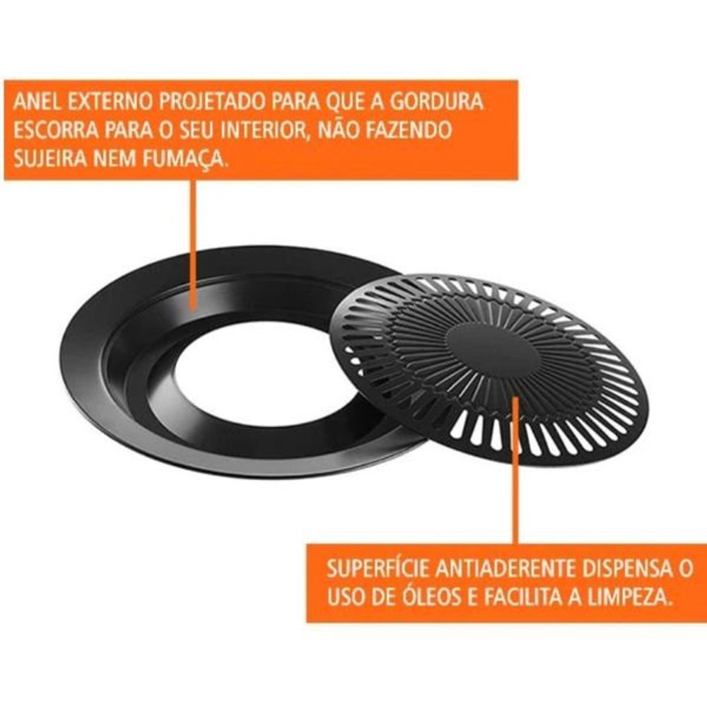 É perfeita para quem deseja preparar um delicioso churrasco em casa, de forma prática, rápida e sem fumaça. Ideal para apartamentos, casas com pouco espaço ou ambientes internos, ela permite grelhar carnes, legumes, peixes e até queijos diretamente no fogão, sem gerar fumaça e sem fazer sujeira. Com 32 cm de diâmetro total, sendo 25 cm de grelha e 35 cm de escorredor, ela possui um design inteligente com anel externo que direciona a gordura para o centro, reduzindo respingos e odores. Seu revestimento cerâmico de alta temperatura garante um cozimento uniforme e mais saudável, sem necessidade de óleo. Além disso, a superfície antiaderente facilita a limpeza após o uso, também é compatível com fogões a gás, elétricos e de indução, oferecendo versatilidade para diversos tipos de cozinha. Leve, prática e feita com materiais atóxicos, ela é segura para toda a família e perfeita para o uso frequente.