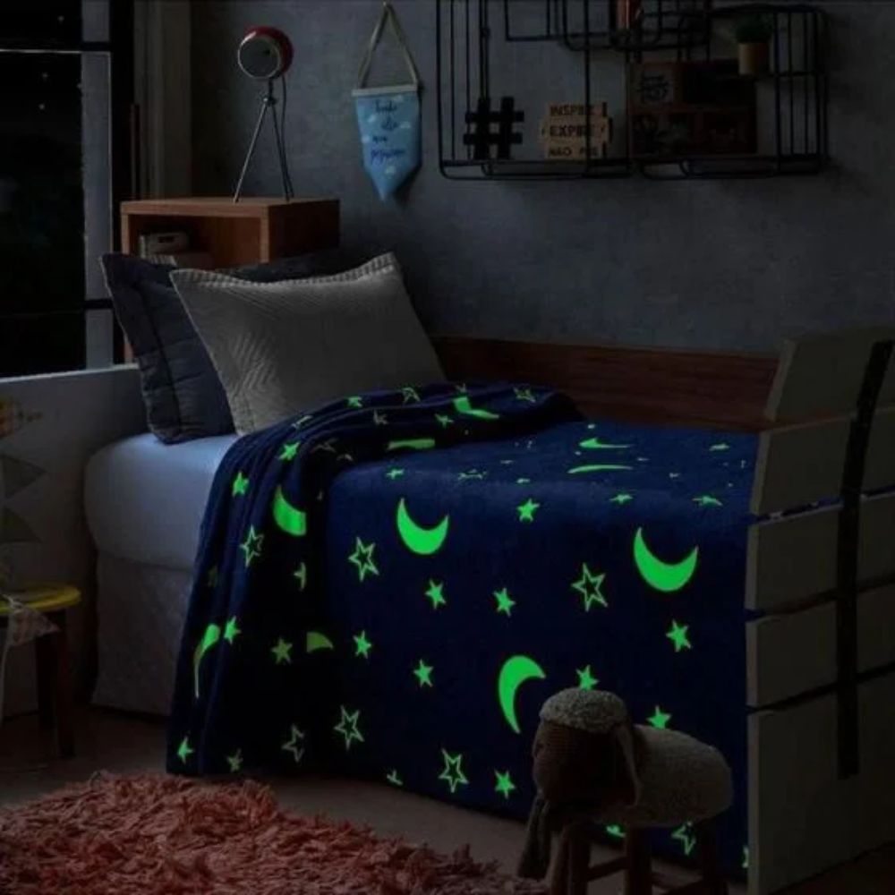 Manta que Brilha no Escuro – Lua e Estrelas – Macia e Fluorescente