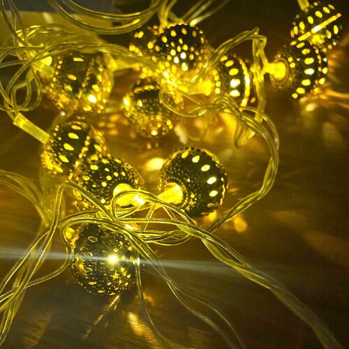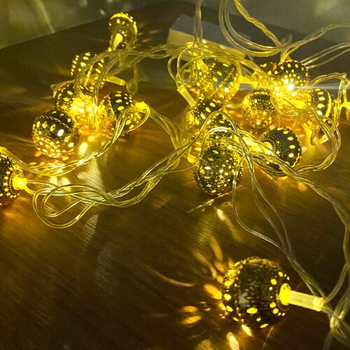 - Quantidade de lâmpadas: 20 bolinhas douradas