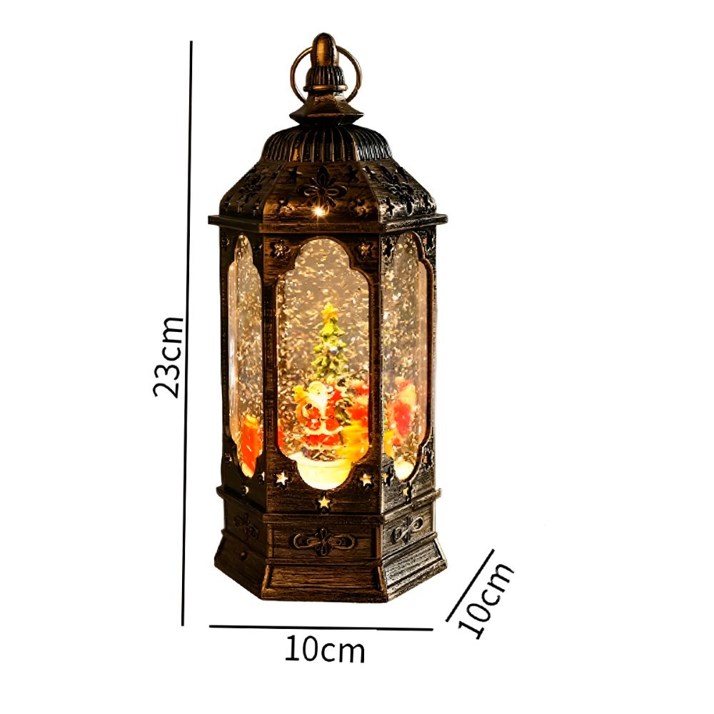 – A beleza do globo de neve com efeito encantador dentro de uma lanterna elegante.