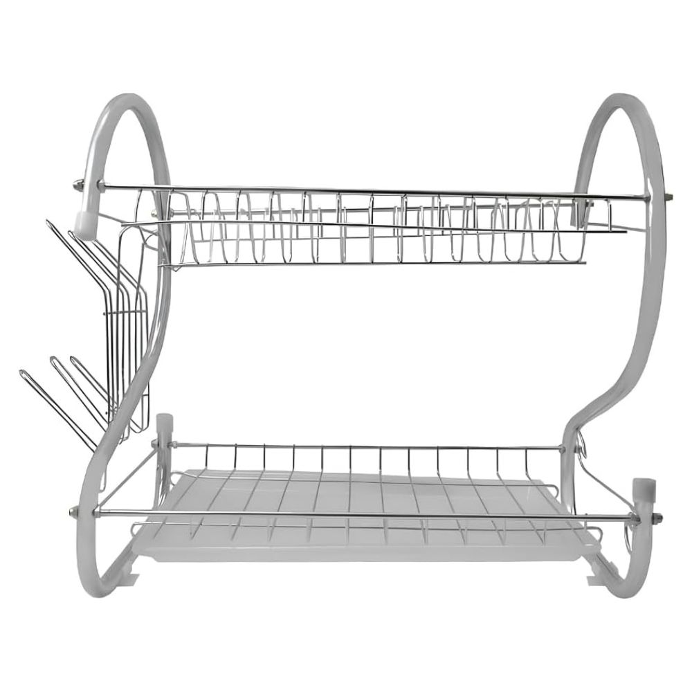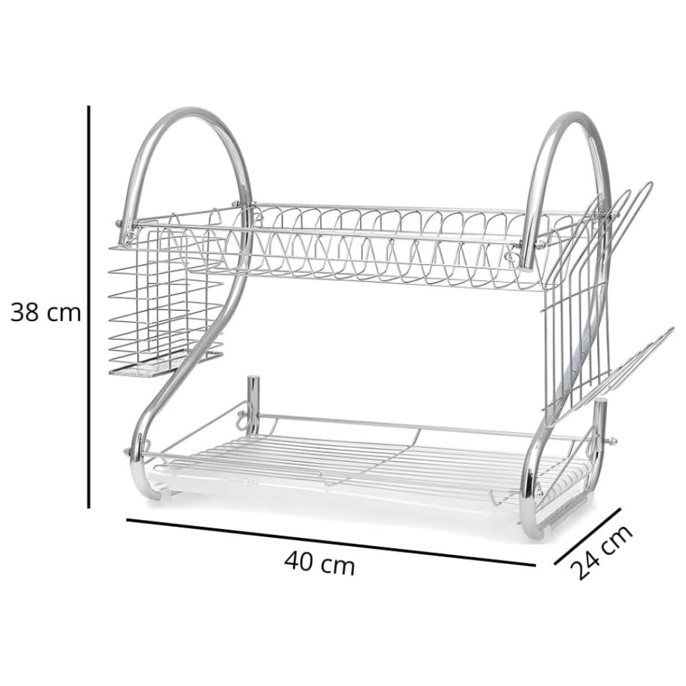 Escorredor de Louças com 2 Andares, Porta-Copos e Porta-Talheres – Aço Cromado e Bandeja Coletora