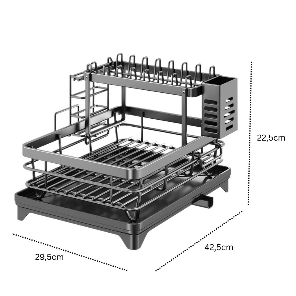 Deixe sua cozinha muito mais organizada, prática e elegante com este escorredor de pratos completo de 2 níveis. Desenvolvido para otimizar espaço e facilitar a rotina, ele acomoda pratos, copos, tigelas, talheres e utensílios de forma inteligente, mantendo a pia sempre limpa e funcional.